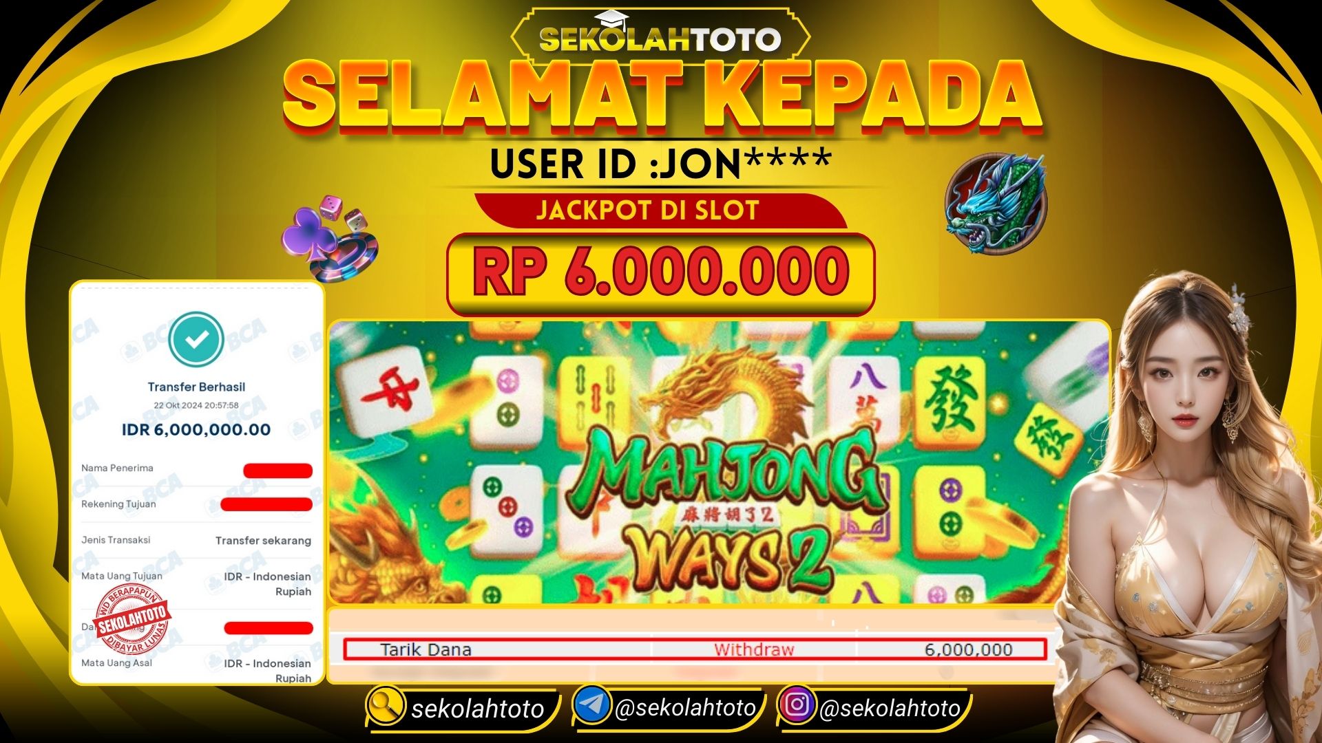 BUKTI PEMBAYARAN JACKPOT SLOT 22 Oktober 2024 Posted by kepsektoto MAHJONG WAYS 2 SELASA , 22 OKTOBER 2024 RP. 6,000,000,- Selamat Kepada Pemenang. Salam JP, Sekolahtoto ! Updated: 22 Oktober 2024 at 21:17 ◀ BUKTI PEMBAYARAN JACKPOT LIVE GAME Prediksi Togel Bullseye Pools Hari Ini ▶