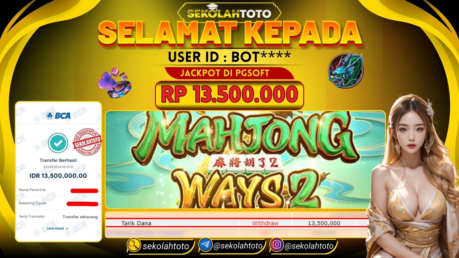 BUKTI PEMBAYARAN JACKPOT PG SOFT 23 Oktober 2024 Posted by kepsektoto Mahjong Ways 2 RABU , 23 OKTOBER 2024 RP. 13,500,000,- Selamat Kepada Pemenang. Salam JP, Sekolahtoto ! Updated: 23 Oktober 2024 at 19:44 ◀ BUKTI PEMBAYARAN JACKPOT PG SOFT Prediksi Togel Bullseye Pools Hari Ini ▶