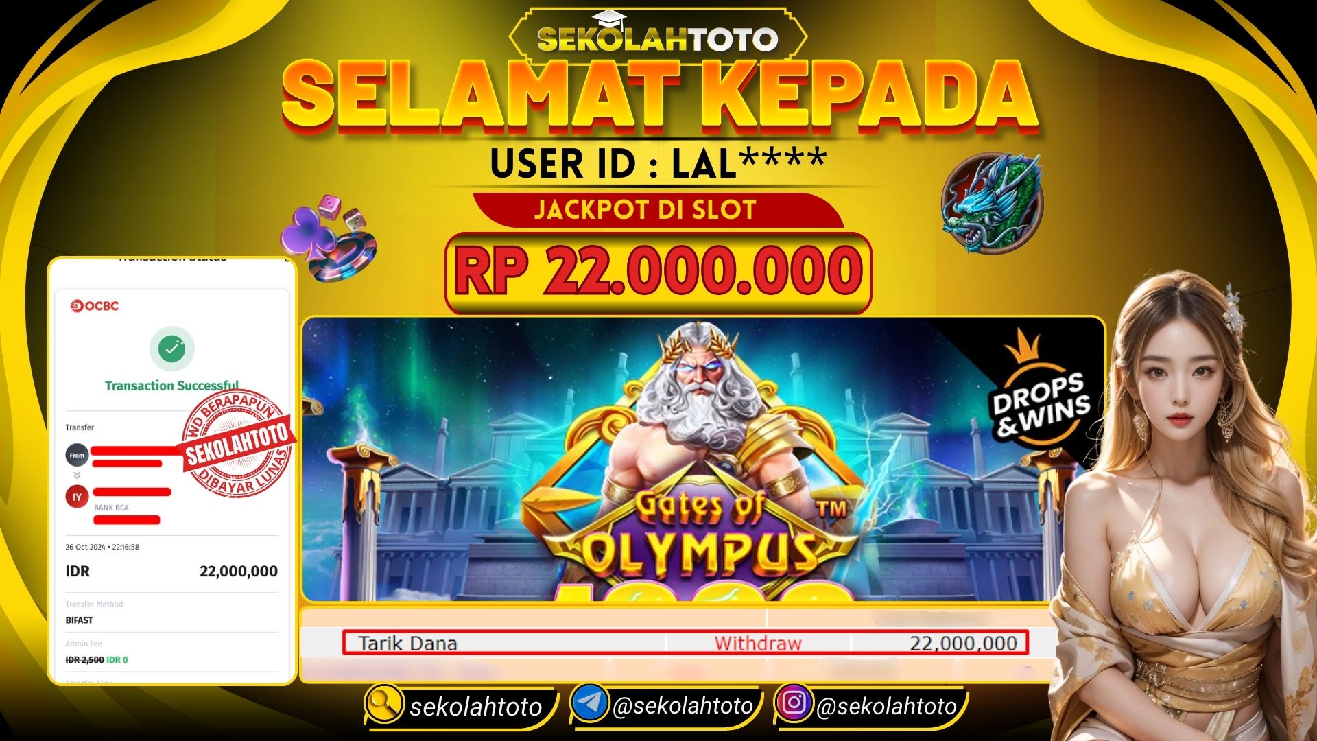 BUKTI PEMBAYARAN JACKPOT SLOT 26 Oktober 2024 Posted by kepsektoto GATES OF OLYMPUS X1000 SABTU, 26 OKTOBER 2024 RP. 22,000,000,- Selamat Kepada Pemenang. Salam JP, Sekolahtoto ! Updated: 26 Oktober 2024 at 22:25 ◀ BUKTI PEMBAYARAN JACKPOT LIVE GAME Prediksi Togel Bullseye Pools Hari Ini ▶