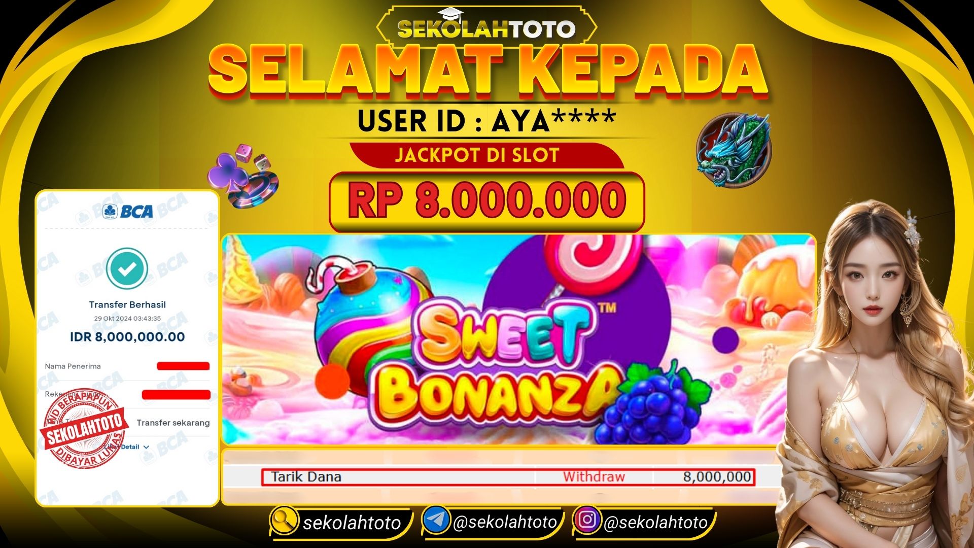 BUKTI PEMBAYARAN JACKPOT SLOT 29 Oktober 2024 Posted by kepsektoto SWEET BONANZA SELASA, 29 OKTOBER 2024 RP. 8,000,000,- Selamat Kepada Pemenang. Salam JP, Sekolahtoto ! Updated: 29 Oktober 2024 at 04:01 ◀ BUKTI PEMBAYARAN JACKPOT SLOT BUKTI PEMBAYARAN JACKPOT TOGEL ▶
