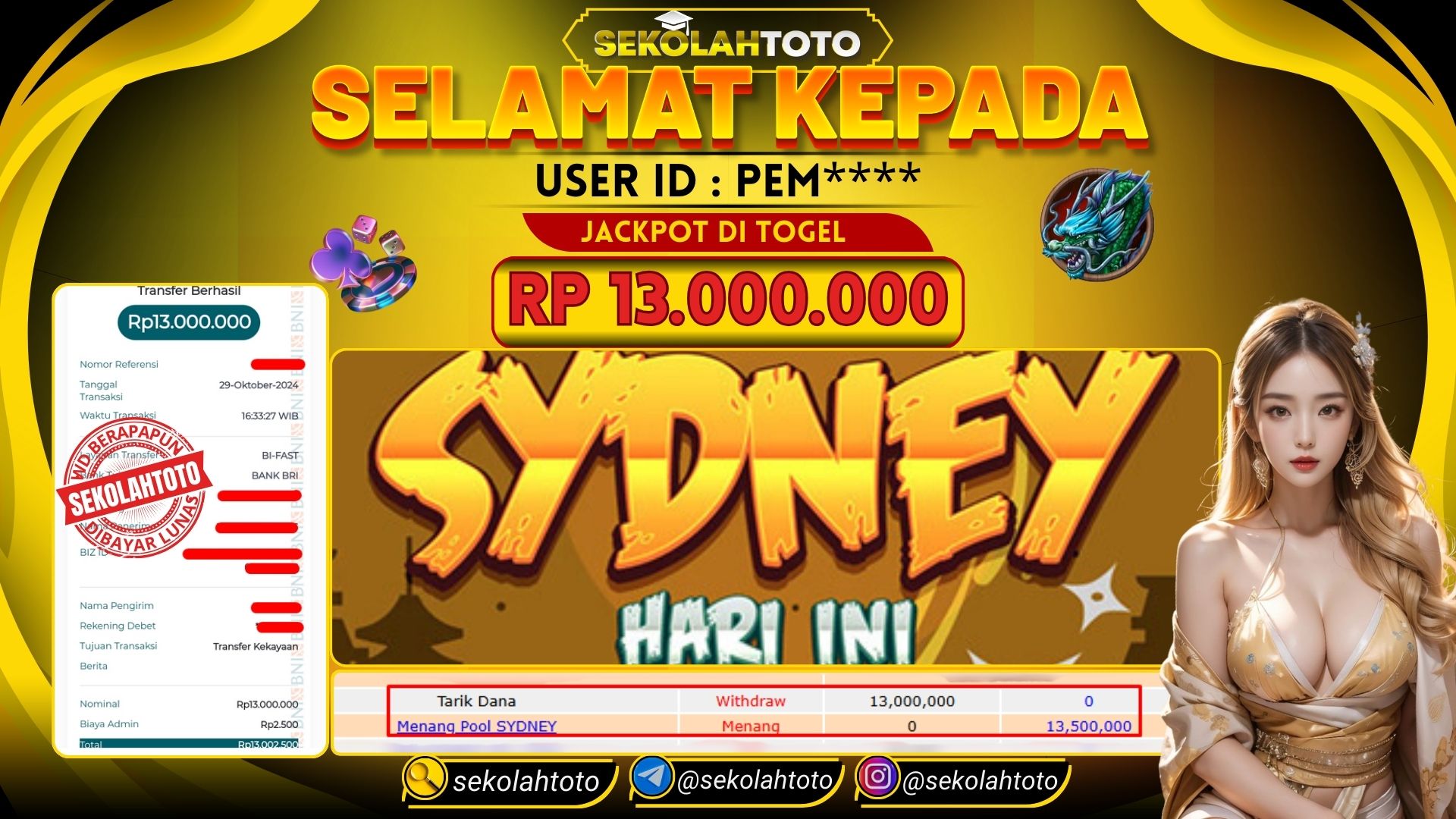 BUKTI PEMBAYARAN JACKPOT TOGEL 29 Oktober 2024 Posted by kepsektoto SYDNEY LOTTO SELASA , 29 OKTOBER 2024 RP. 13,000,000,- Selamat Kepada Pemenang. Salam JP, Sekolahtoto ! Updated: 29 Oktober 2024 at 16:45 ◀ BUKTI PEMBAYARAN JACKPOT SLOT Prediksi Togel Bullseye Pools Hari Ini ▶