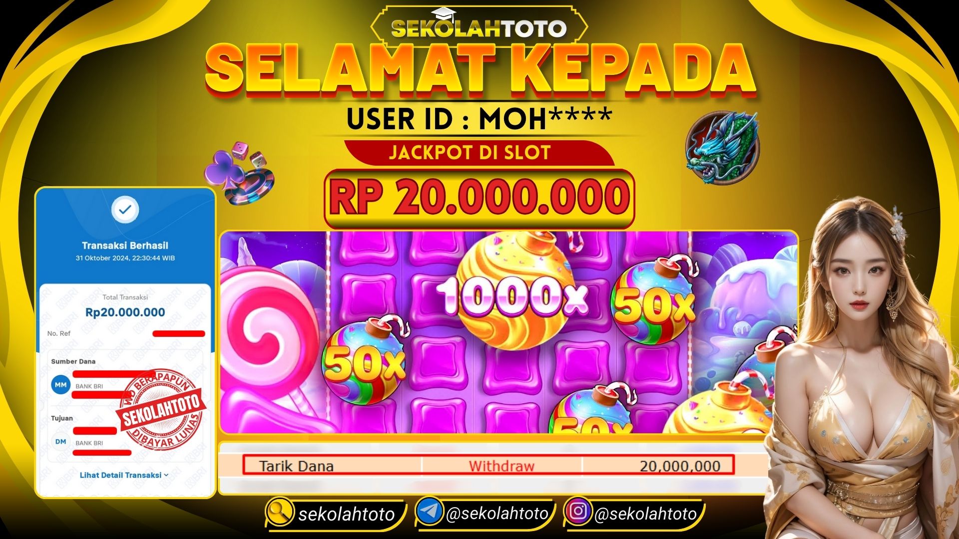 BUKTI PEMBAYARAN JACKPOT SLOT 31 Oktober 2024 Posted by kepsektoto SWEET BONANZA KAMIS, 31 OKTOBER 2024 RP. 20,000,000,- Selamat Kepada Pemenang. Salam JP, Sekolahtoto ! Updated: 31 Oktober 2024 at 22:52 ◀ BUKTI PEMBAYARAN JACKPOT SLOT Prediksi Togel Bullseye Pools Hari Ini ▶