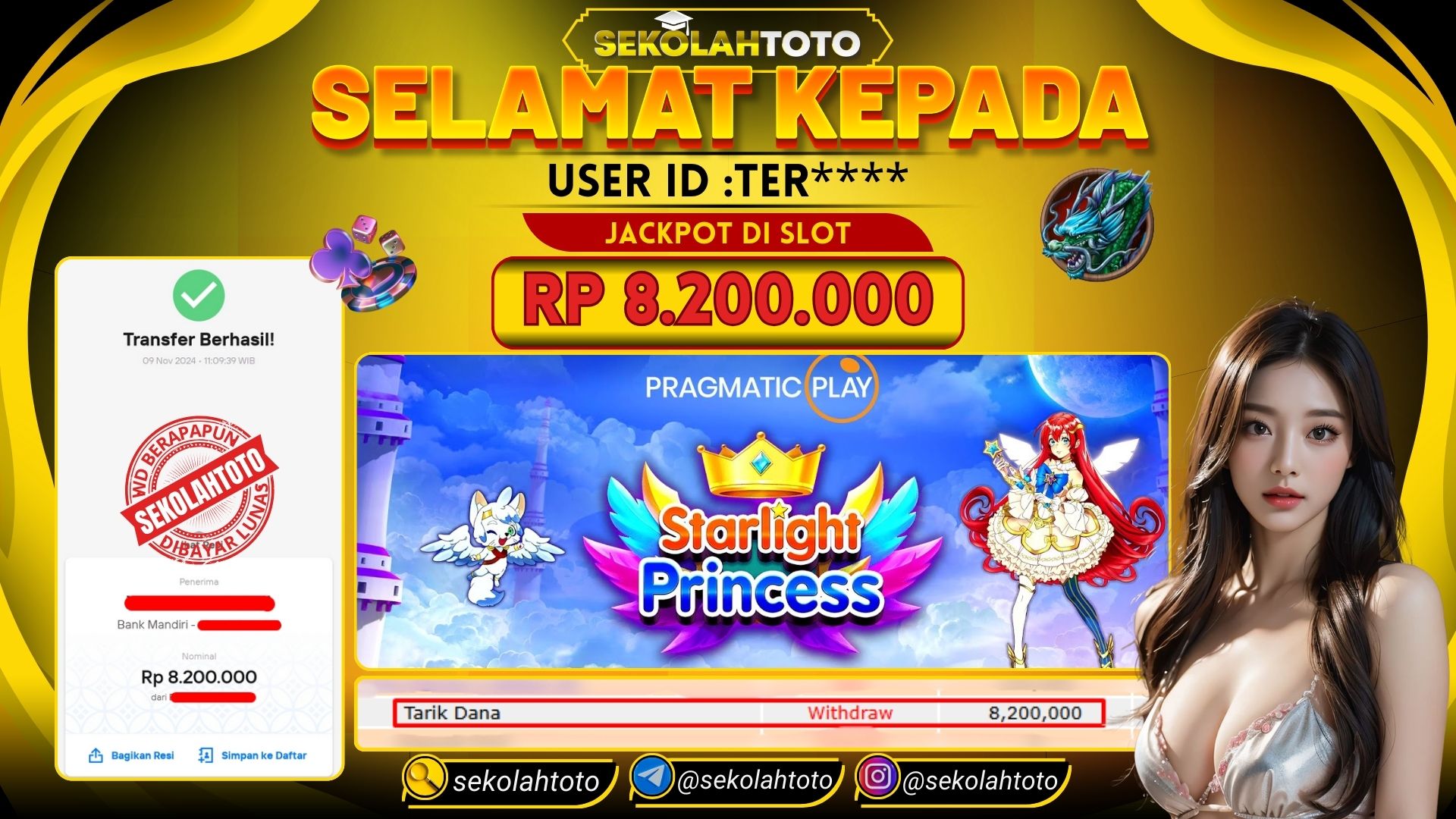 BUKTI PEMBAYARAN JACKPOT SLOT 9 November 2024 Posted by kepsektoto STARLIGHT PRINCESS SABTU , 09 NOVEMBER 2024 RP. 8,200,000,- Selamat Kepada Pemenang. Salam JP, Sekolahtoto ! Updated: 9 November 2024 at 12:30 ◀ Prediksi Togel Toto Macau Hari Ini Prediksi Togel Bullseye Pools Hari Ini ▶