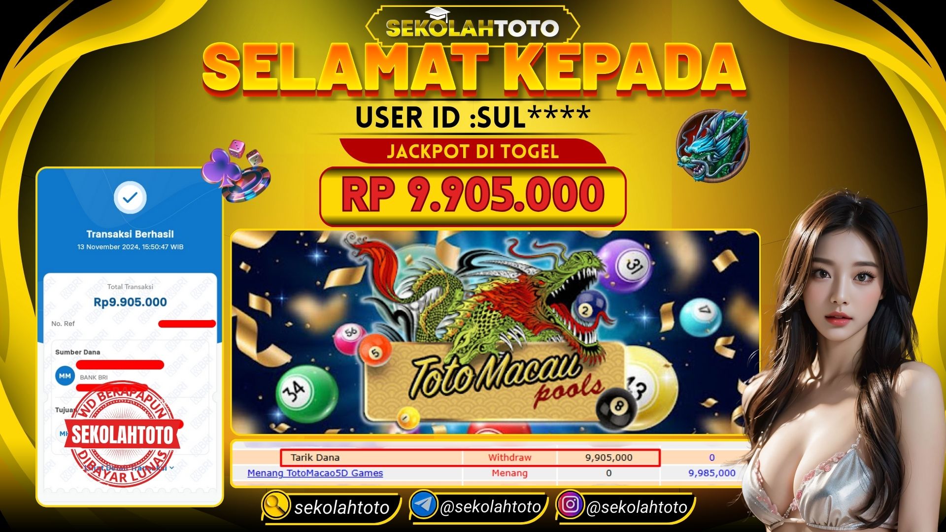 BUKTI PEMBAYARAN JACKPOT TOGEL 13 November 2024 Posted by kepsektoto TOTOMACAU 5D RABU , 13 NOVEMBER 2024 RP. 9,905,000,- Selamat Kepada Pemenang. Salam JP, Sekolahtoto ! Updated: 13 November 2024 at 16:03 ◀ Prediksi Togel Toto Macau Hari Ini Prediksi Togel Bullseye Pools Hari Ini ▶