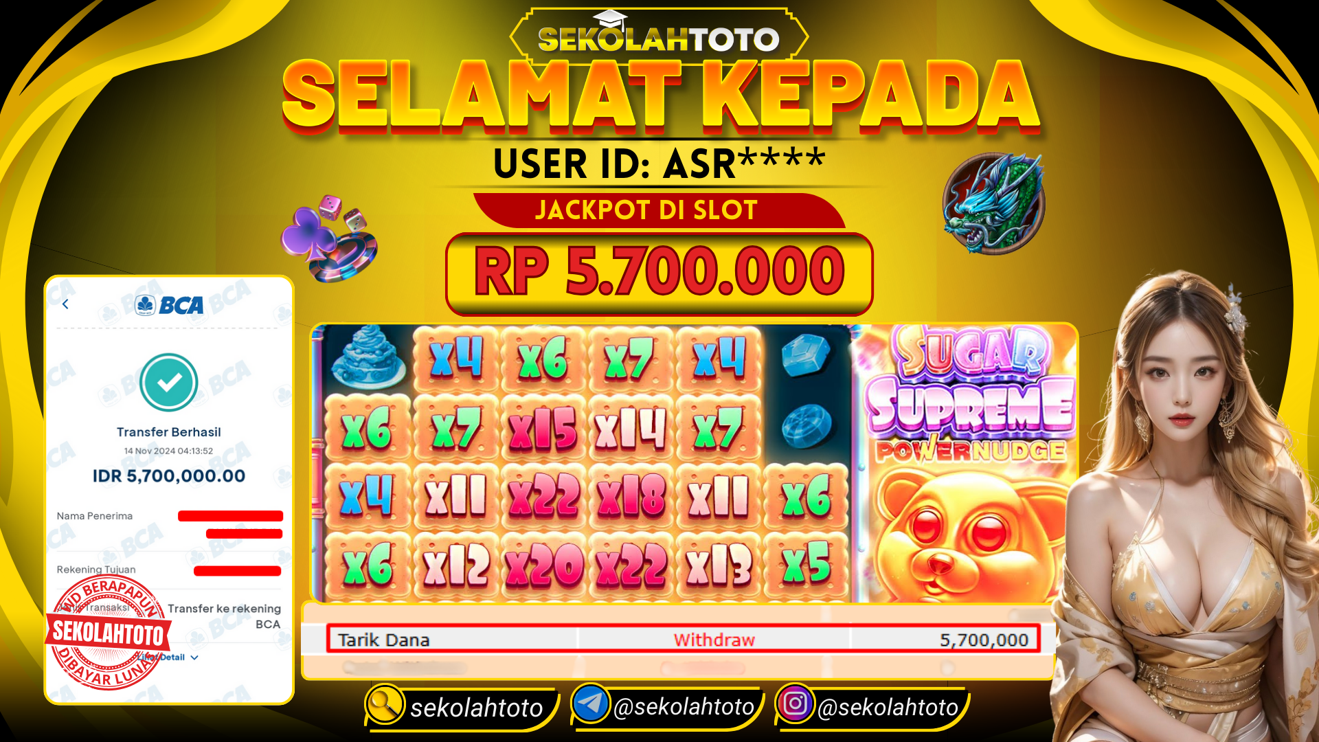 BUKTI PEMBAYARAN JACKPOT SLOT 14 November 2024 Posted by kepsektoto SUGAR SUPREME KAMIS , 14 NOVEMBER 2024 RP. 5,700,000,- Selamat Kepada Pemenang. Salam JP, Sekolahtoto ! Updated: 14 November 2024 at 06:19 ◀ BUKTI PEMBAYARAN JACKPOT SLOT Prediksi Togel Bullseye Pools Hari Ini ▶