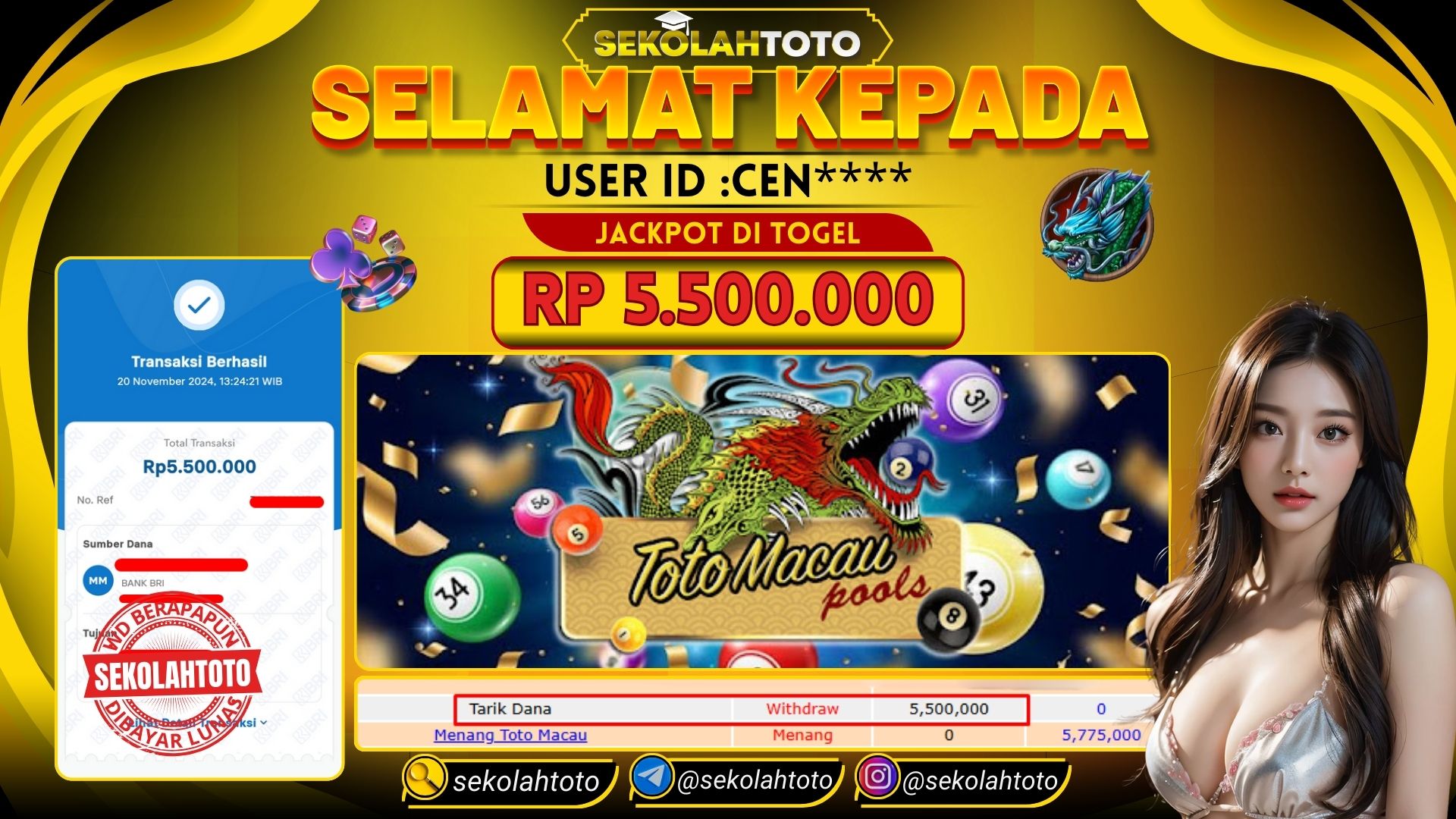 BUKTI PEMBAYARAN JACKPOT TOGEL 20 November 2024 Posted by kepsektoto TOTOMACAU POOLS RABU , 20 NOVEMBER 2024 RP. 5,500,000,- Selamat Kepada Pemenang. Salam JP, Sekolahtoto ! Updated: 20 November 2024 at 16:03 ◀ BUKTI PEMBAYARAN JACKPOT PRAGMATIC PLAY BUKTI PEMBAYARAN JACKPOT PRAGMATIC LIVE DEALER ▶