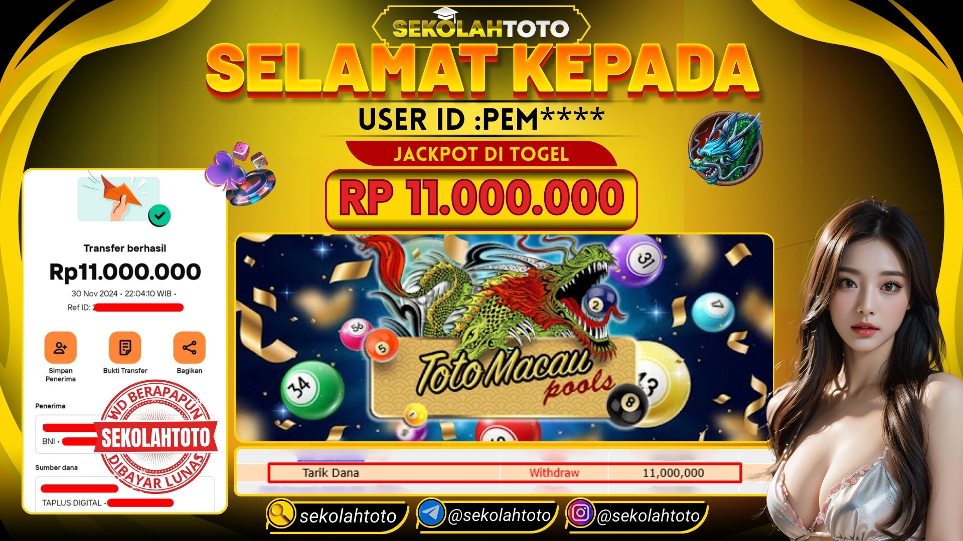 BUKTI PEMBAYARAN JACKPOT TOGEL 30 November 2024 Posted by kepsektoto TOTOMACAU POOLS SABTU , 30 NOVEMBER 2024 RP. 11,000,000,- Selamat Kepada Pemenang. Salam JP, Sekolahtoto ! Updated: 2 Desember 2024 at 00:13 ◀ BUKTI PEMBAYARAN JACKPOT PGSOFT Prediksi Togel Bullseye Pools Hari Ini ▶