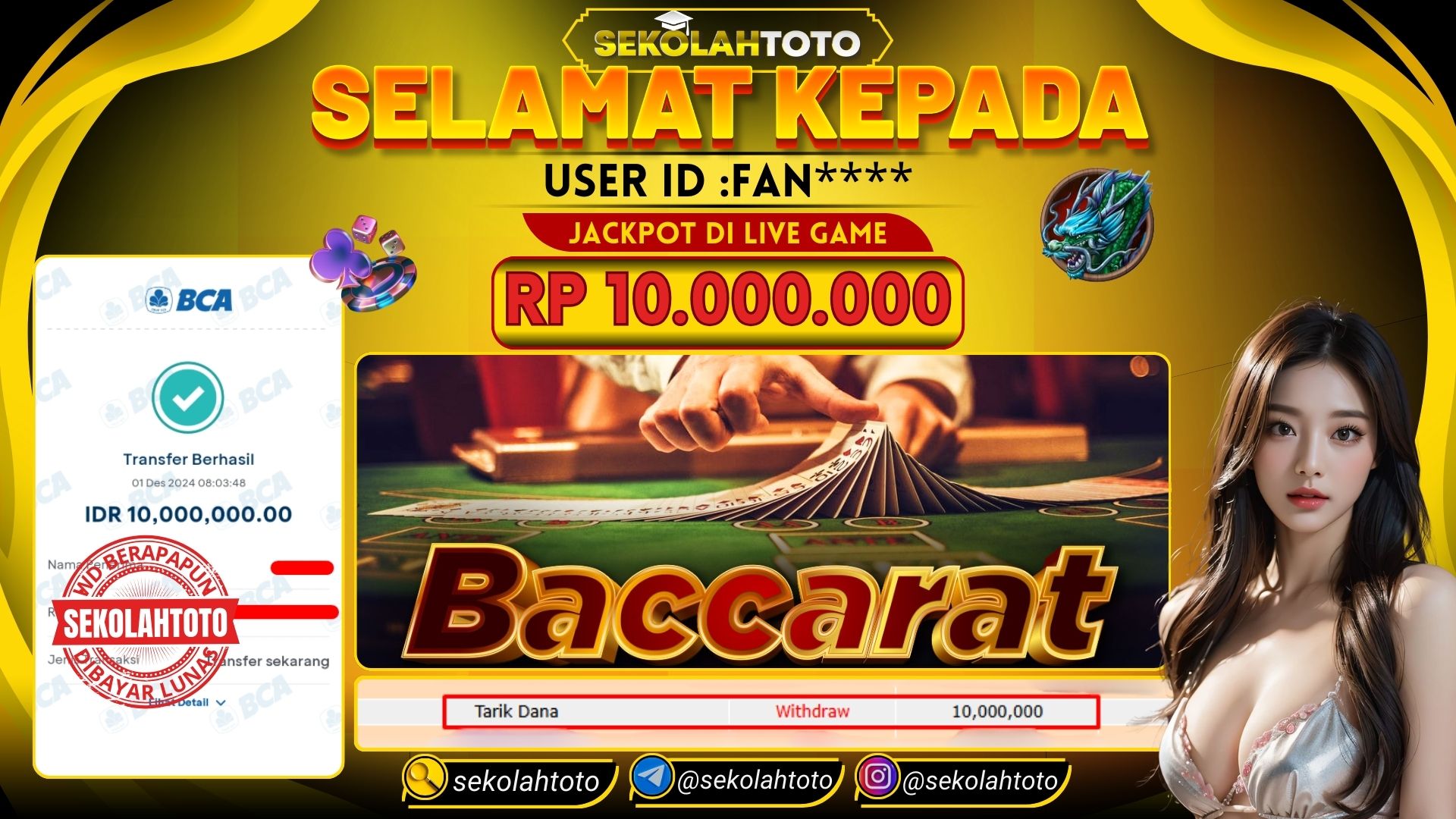 BUKTI PEMBAYARAN JACKPOT LIVE GAME 1 Desember 2024 Posted by kepsektoto BACCARAT 2 IDN LIVE MINGGU , 01 DESEMBER 2024 RP. 10,000,000,- Selamat Kepada Pemenang. Salam JP, Sekolahtoto ! Updated: 1 Desember 2024 at 08:19 ◀ Prediksi Togel Toto Macau Hari Ini BUKTI PEMBAYARAN JACKPOT PRAGMATIC PLAY ▶