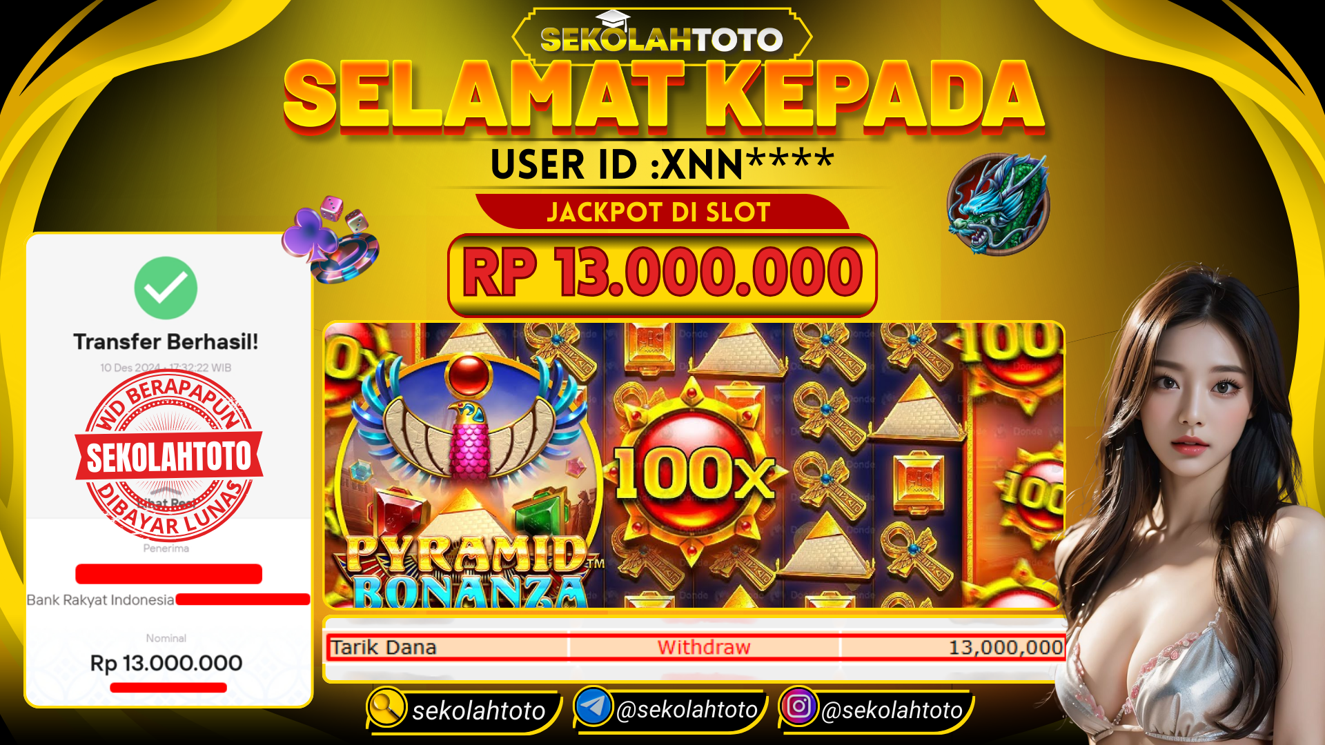 BUKTI PEMBAYARAN JACKPOT PRAGMATIC PLAY 11 Desember 2024 Posted by kepsektoto PYRAMID BONANZA RABU , 11 DESEMBER 2024 RP. 13,000,000,- Selamat Kepada Pemenang. Salam JP, Sekolahtoto ! Updated: 11 Desember 2024 at 14:42 ◀ BUKTI PEMBAYARAN JACKPOT PRAGMATIC PLAY BUKTI PEMBAYARAN JACKPOT TOGEL ▶