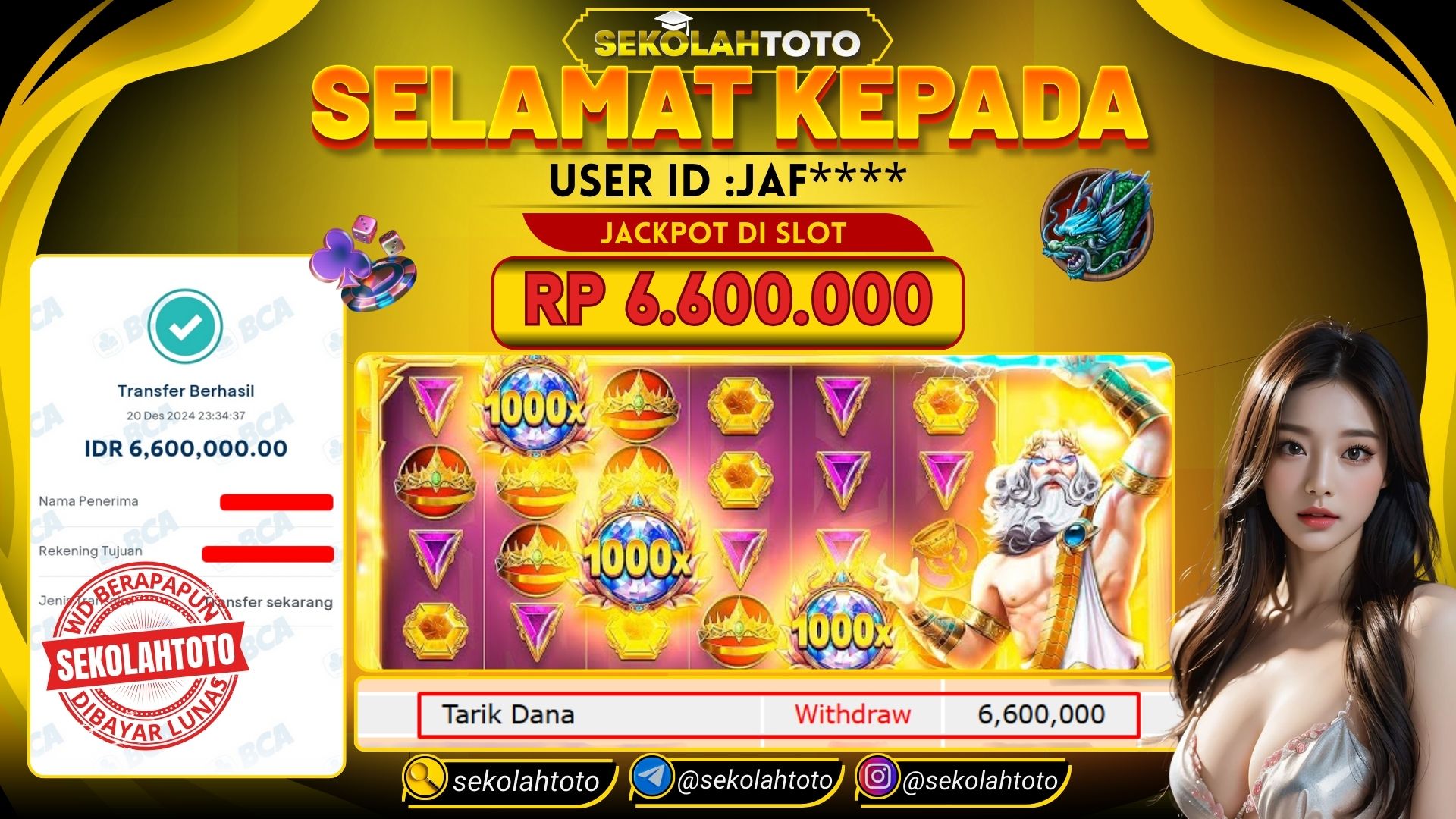 BUKTI PEMBAYARAN JACKPOT PRAGMATIC PLAY 21 Desember 2024 Posted by kepsektoto GATES OF OLYMPUS 1000X SABTU , 21 DESEMBER 2024 RP. 6,600,000,- Selamat Kepada Pemenang. Salam JP, Sekolahtoto ! Updated: 21 Desember 2024 at 05:34 ◀ Prediksi Togel Toto Macau Hari Ini BUKTI PEMBAYARAN JACKPOT PRAGMATIC PLAY ▶