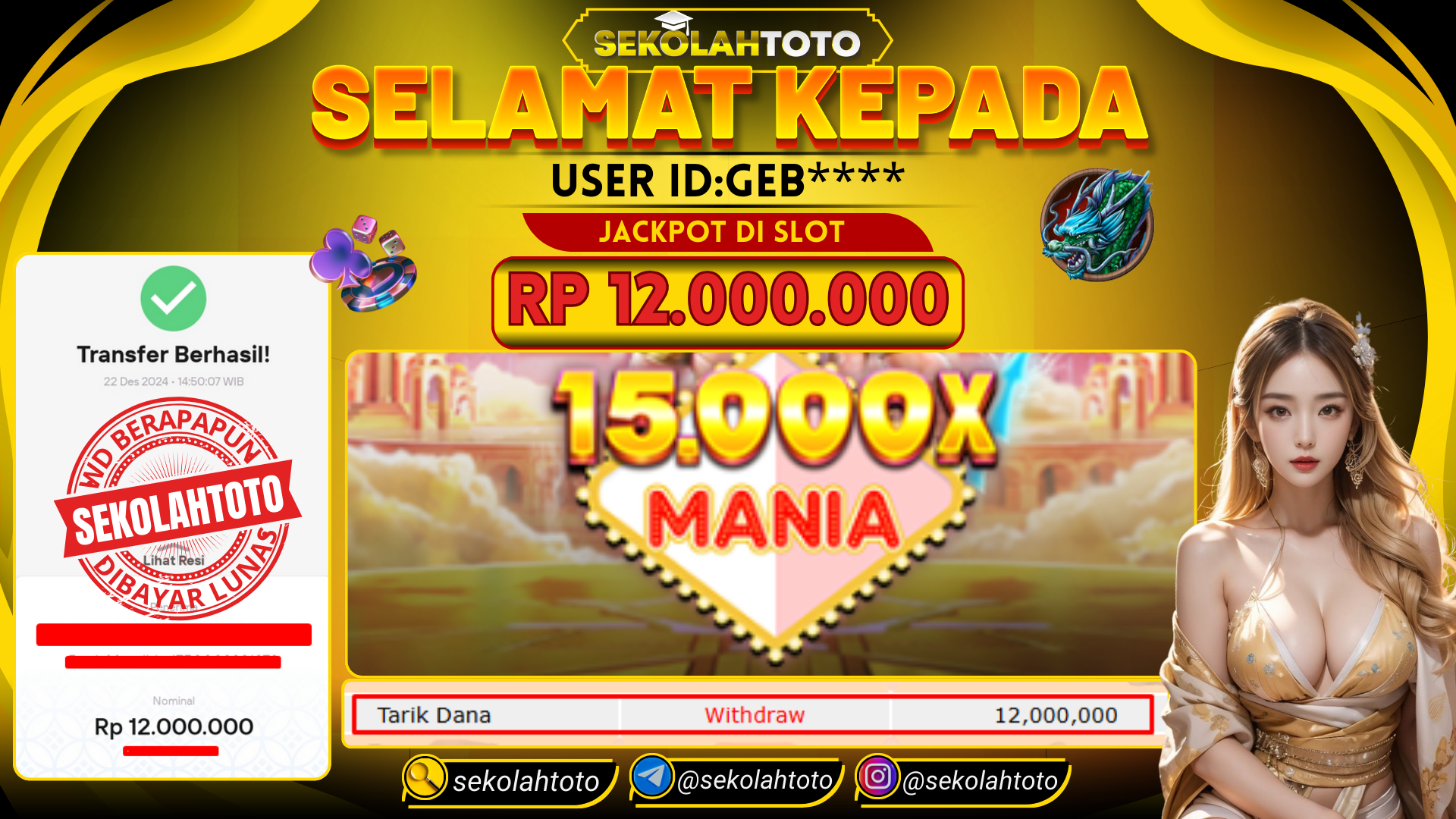BUKTI PEMBAYARAN JACKPOT PRAGMATIC PLAY 22 Desember 2024 Posted by kepsektoto 15.000X MANIA MINGGU , 22 DESEMBER 2024 RP. 12,000,000,- Selamat Kepada Pemenang. Salam JP, Sekolahtoto ! Updated: 22 Desember 2024 at 15:43 ◀ BUKTI PEMBAYARAN JACKPOT LIVE GAME BUKTI PEMBAYARAN JACKPOT PRAGMATIC PLAY ▶