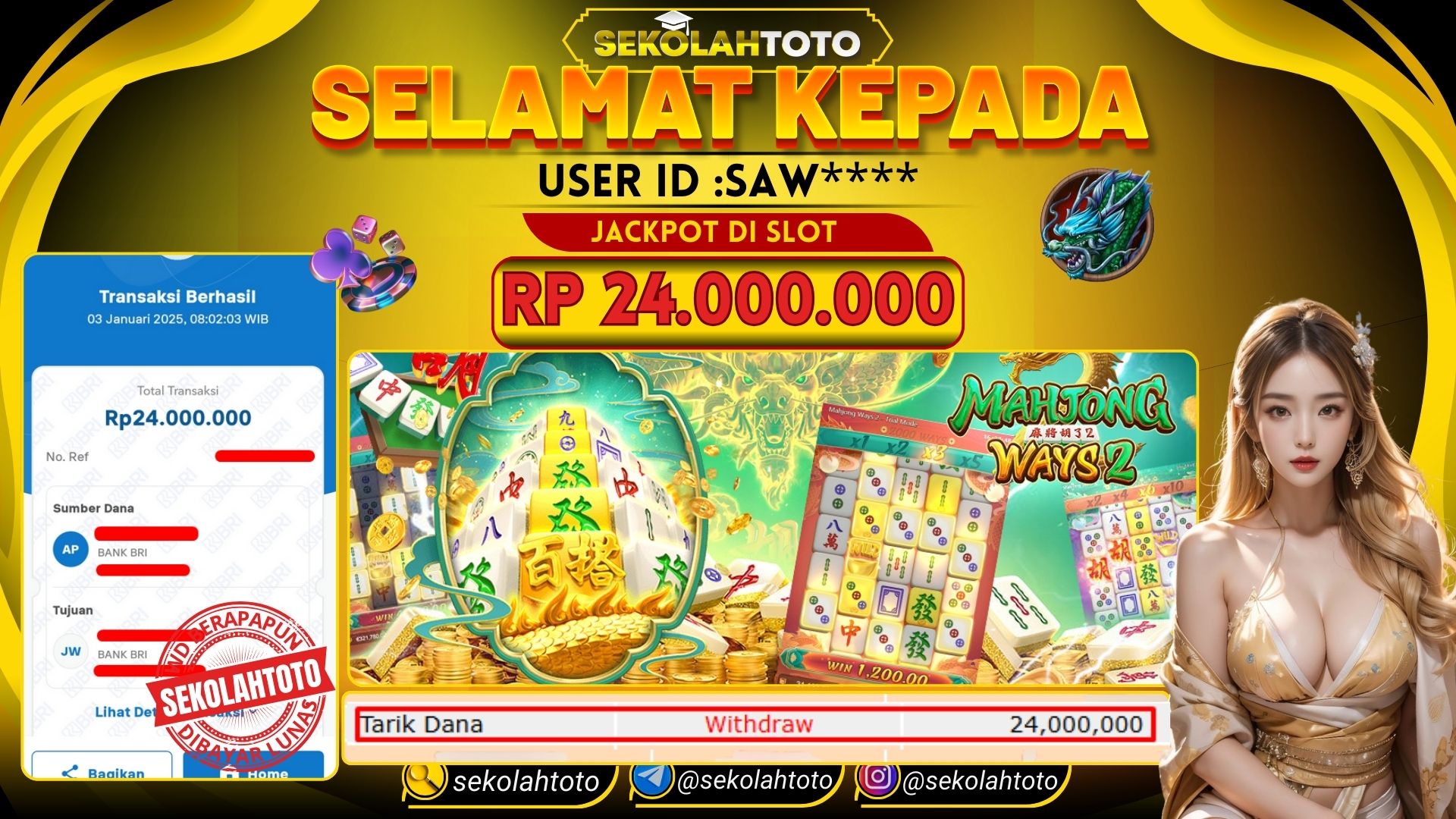BUKTI PEMBAYARAN JACKPOT PGSOFT 3 Januari 2025 Posted by kepsektoto MAHJONG WAYS 2 jum’at , 03 JANUARI 2025 RP. 24,000,000,- Selamat Kepada Pemenang. Salam JP, Sekolahtoto Updated: 3 Januari 2025 at 08:16 ◀ Prediksi Togel Toto Macau Hari Ini Prediksi Togel Bullseye Pools Hari Ini ▶