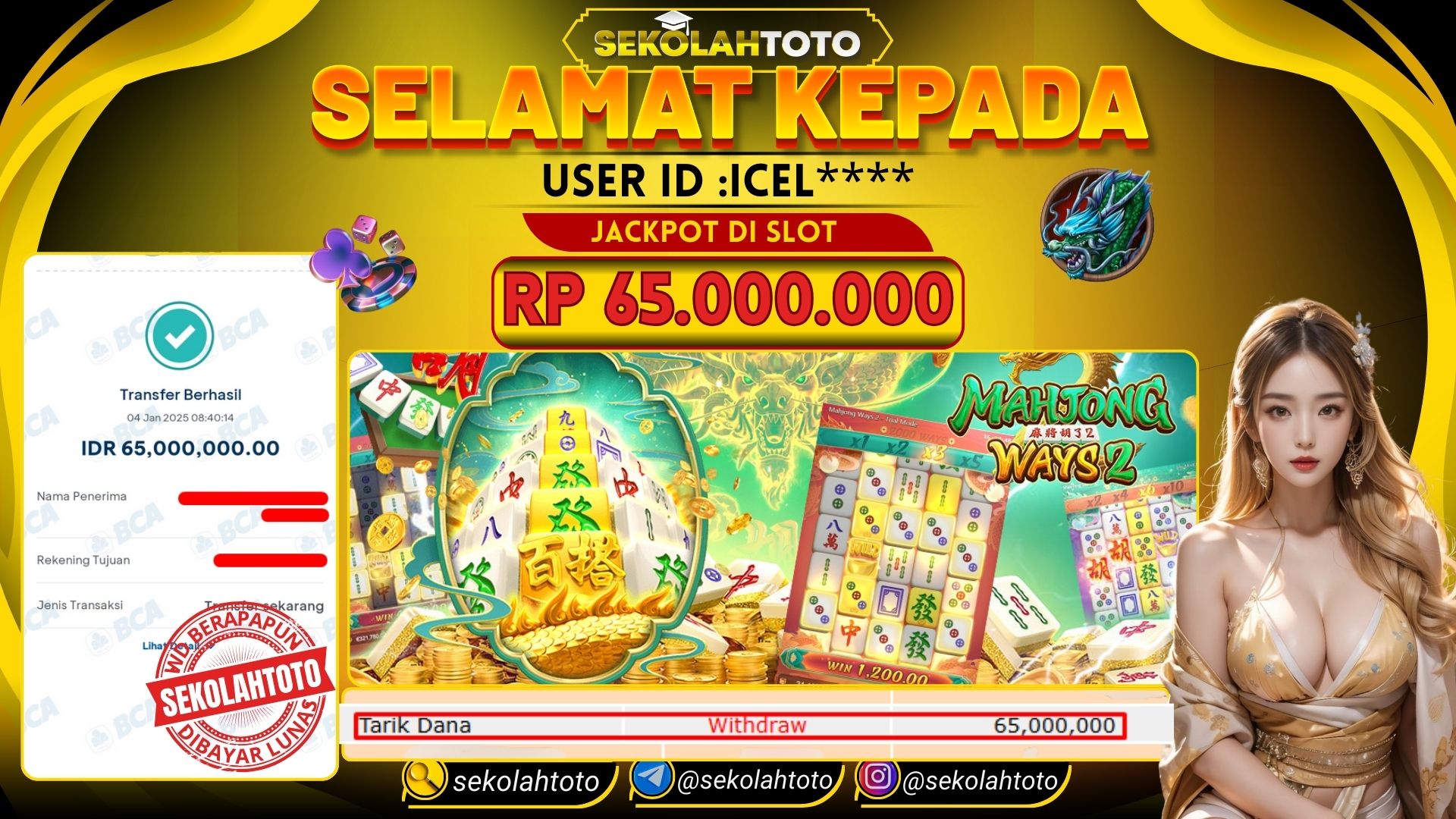 BUKTI PEMBAYARAN JACKPOT PGSOFT 4 Januari 2025 Posted by kepsektoto MAHJONG WAYS 2 SABTU , 04 JANUARI 2025 RP. 65,000,000,- Selamat Kepada Pemenang. Salam JP, Sekolahtoto Updated: 4 Januari 2025 at 08:48 ◀ BUKTI PEMBAYARAN JACKPOT PRAGMATIC PLAY BUKTI PEMBAYARAN JACKPOT PRAGMATIC ▶