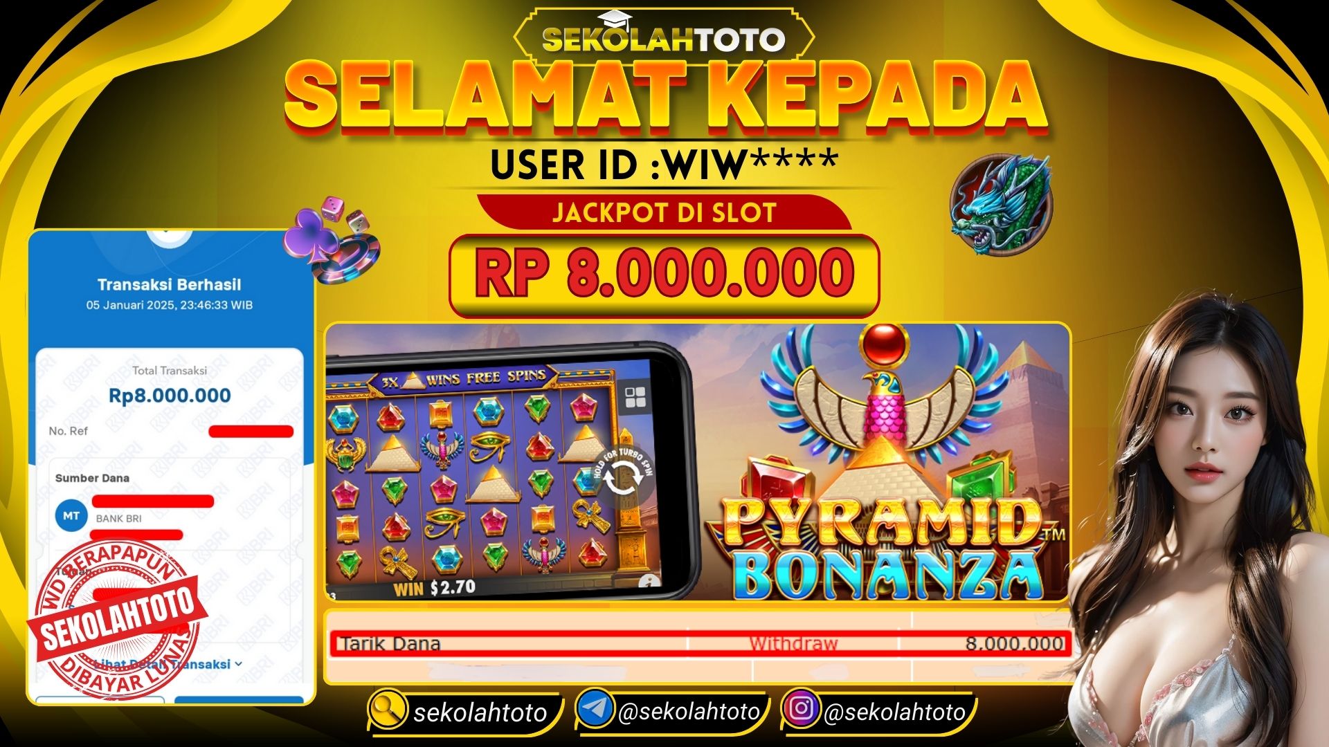 BUKTI PEMBAYARAN JACKPOT PRAGMATIC PLAY 6 Januari 2025 Posted by kepsektoto PYRAMID BONANZA MINGGU, 05 JANUARI 2025 RP. 8,000,000,- Selamat Kepada Pemenang. Salam JP, Sekolahtoto Updated: 6 Januari 2025 at 01:43 ◀ Prediksi Togel Toto Macau Hari Ini BUKTI PEMBAYARAN JACKPOT PGSOFT ▶
