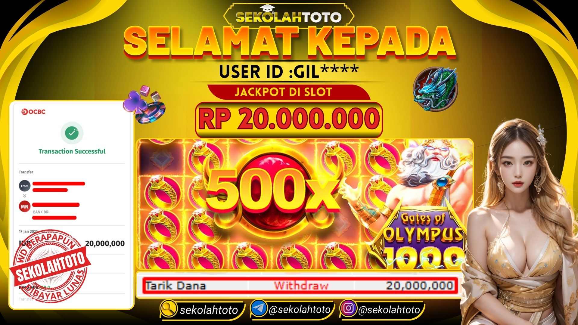 BUKTI PEMBAYARAN JACKPOT PRAGMATIC PLAY 17 Januari 2025 Posted by kepsektoto GATE OF OLYMPUS 1000 JUM’AT , 17 JANUARI 2025 RP. 20,000,000,- Selamat Kepada Pemenang. Salam JP, Sekolahtoto Updated: 17 Januari 2025 at 02:57 ◀ BUKTI PEMBAYARAN JACKPOT PGSOFT BUKTI PEMBAYARAN JACKPOT PRAGMATIC PLAY ▶