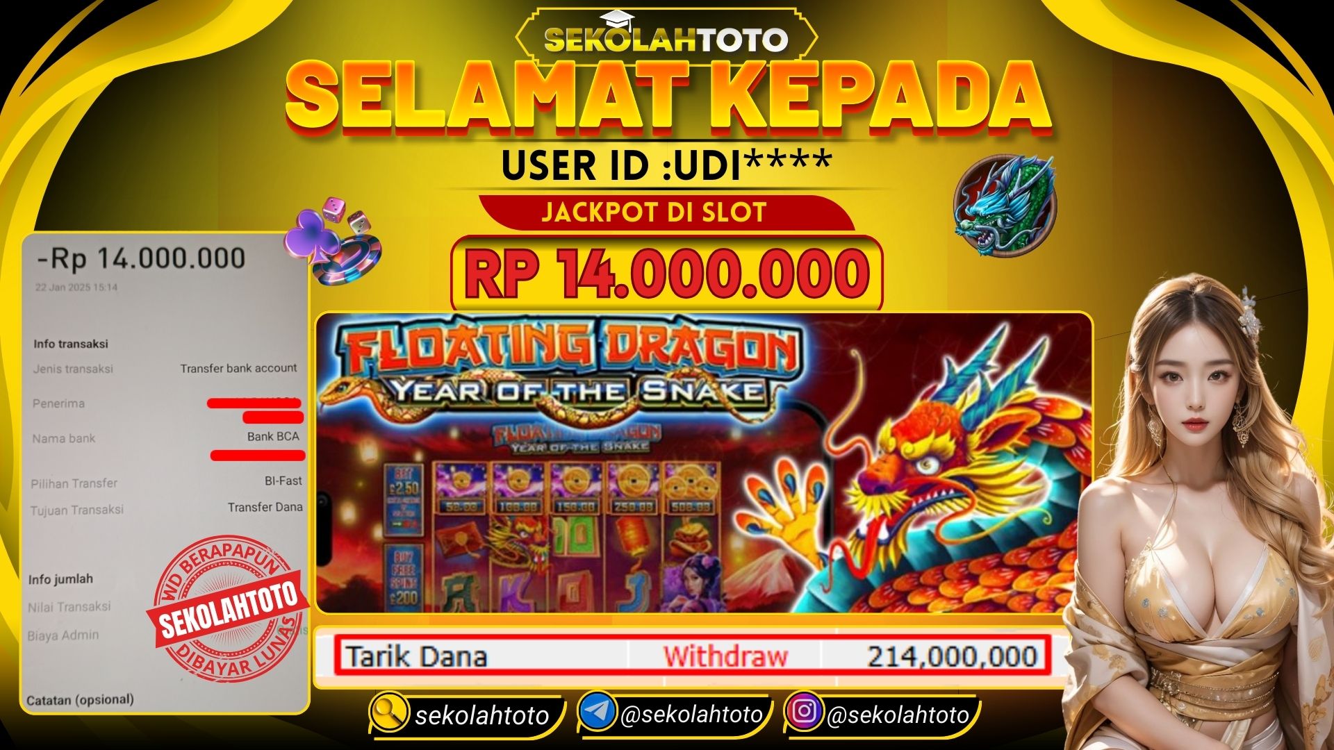 BUKTI PEMBAYARAN JACKPOT PRAGMATIC PLAY 22 Januari 2025 Posted by kepsektoto FLOATING DRAGON Year of the snake RABU , 22 JANUARI 2025 RP. 14,000,000,- Selamat Kepada Pemenang. Salam JP, Sekolahtoto Updated: 22 Januari 2025 at 16:25 ◀ BUKTI PEMBAYARAN JACKPOT PRAGMATIC PLAY BUKTI PEMBAYARAN JACKPOT PRAGMATIC PLAY ▶