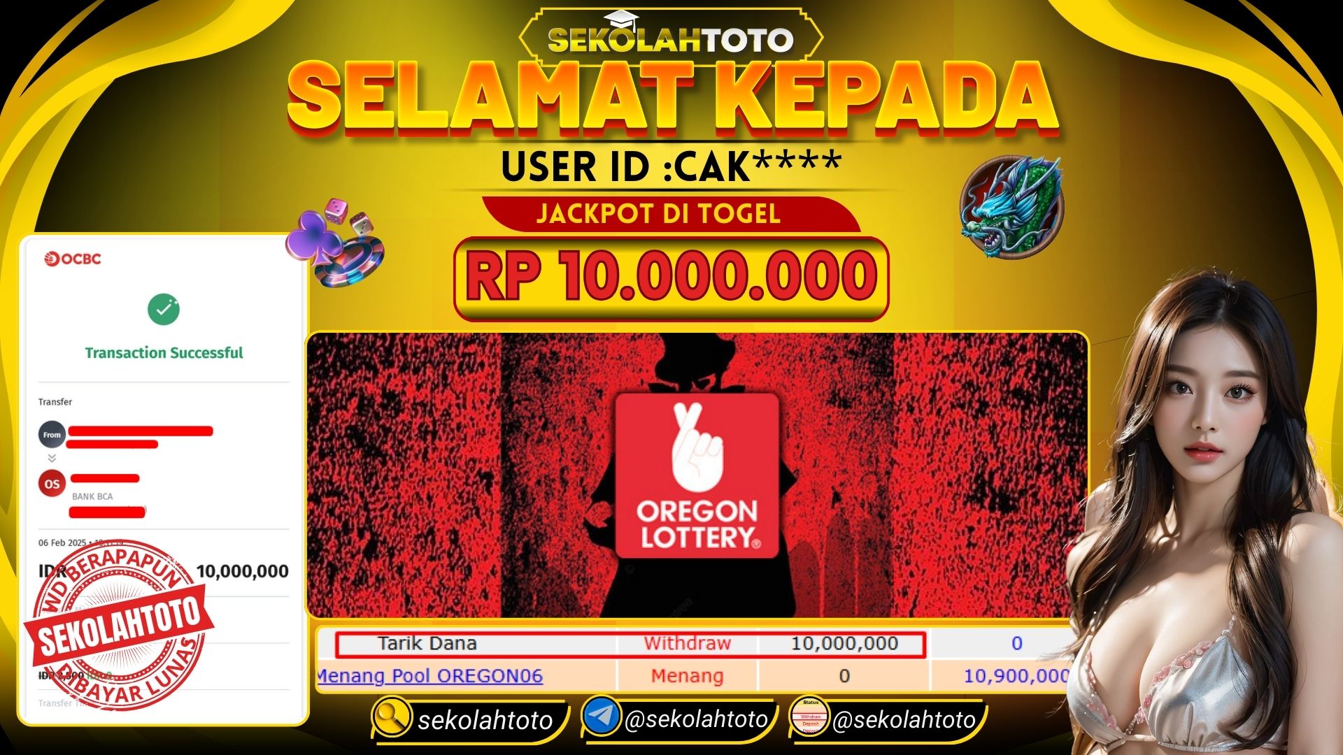 BUKTI PEMBAYARAN JACKPOT TOGEL 6 Februari 2025 Posted by kepsektoto OREGON LOTTO KAMIS , 06 FEBRUARI 2025 RP. 10,000,000,- Selamat Kepada Pemenang. Salam JP, Sekolahtoto Updated: 6 Februari 2025 at 12:15 ◀ BUKTI PEMBAYARAN JACKPOT PGSOFT BUKTI PEMBAYARAN JACKPOT PRAGMATIC PLAY ▶