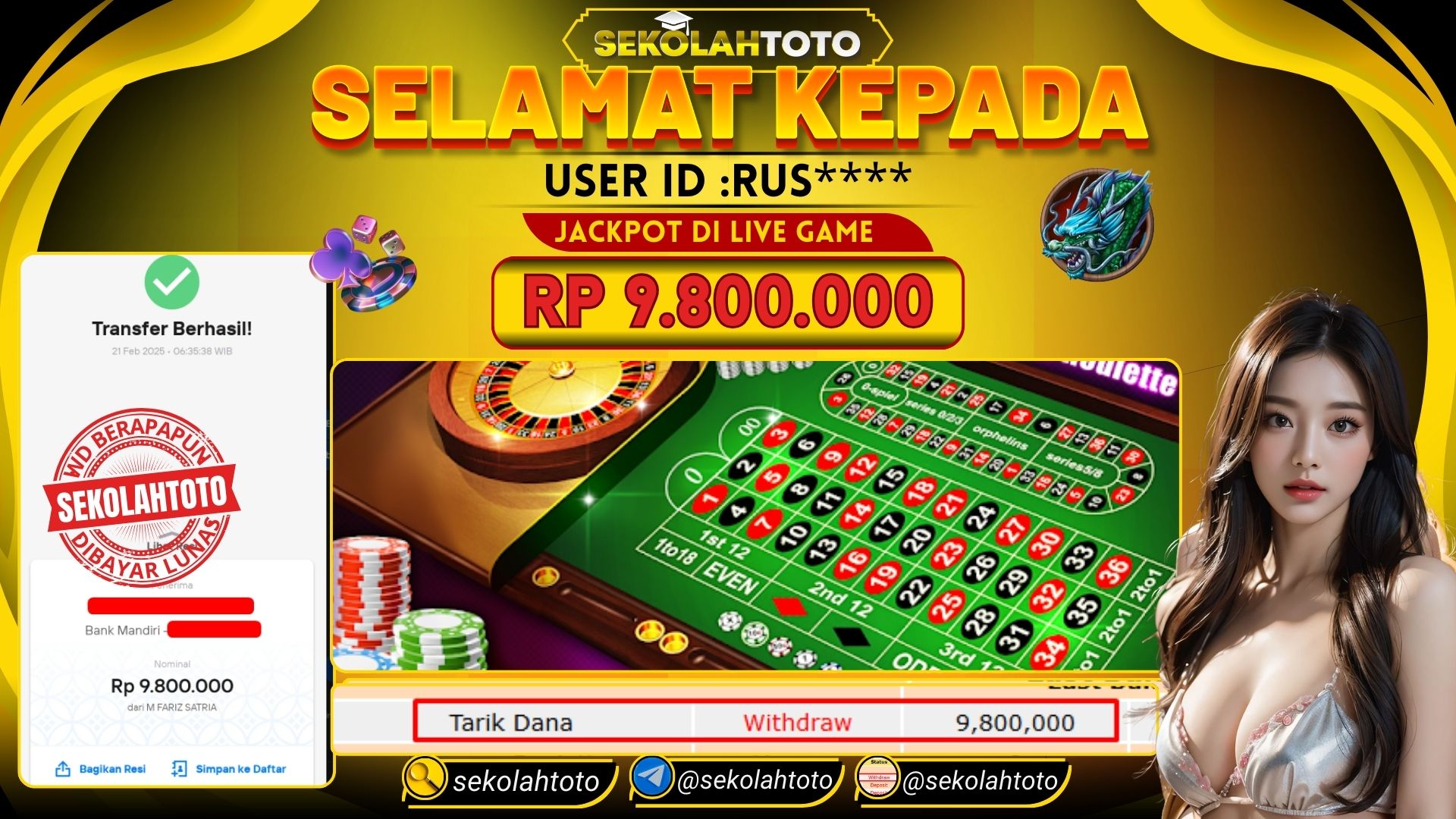 BUKTI PEMBAYARAN JACKPOT LIVE GAMES 21 Februari 2025 Posted by kepsektoto LIVE GAME ROULETTE JUMAT , 21 FEBRUARI 2025 RP. 9,800,000,- Selamat Kepada Pemenang. Salam JP, Sekolahtoto Updated: 21 Februari 2025 at 10:27 ◀ Prediksi Togel Toto Macau Hari Ini BUKTI PEMBAYARAN JACKPOT TOGEL ONLINE ▶