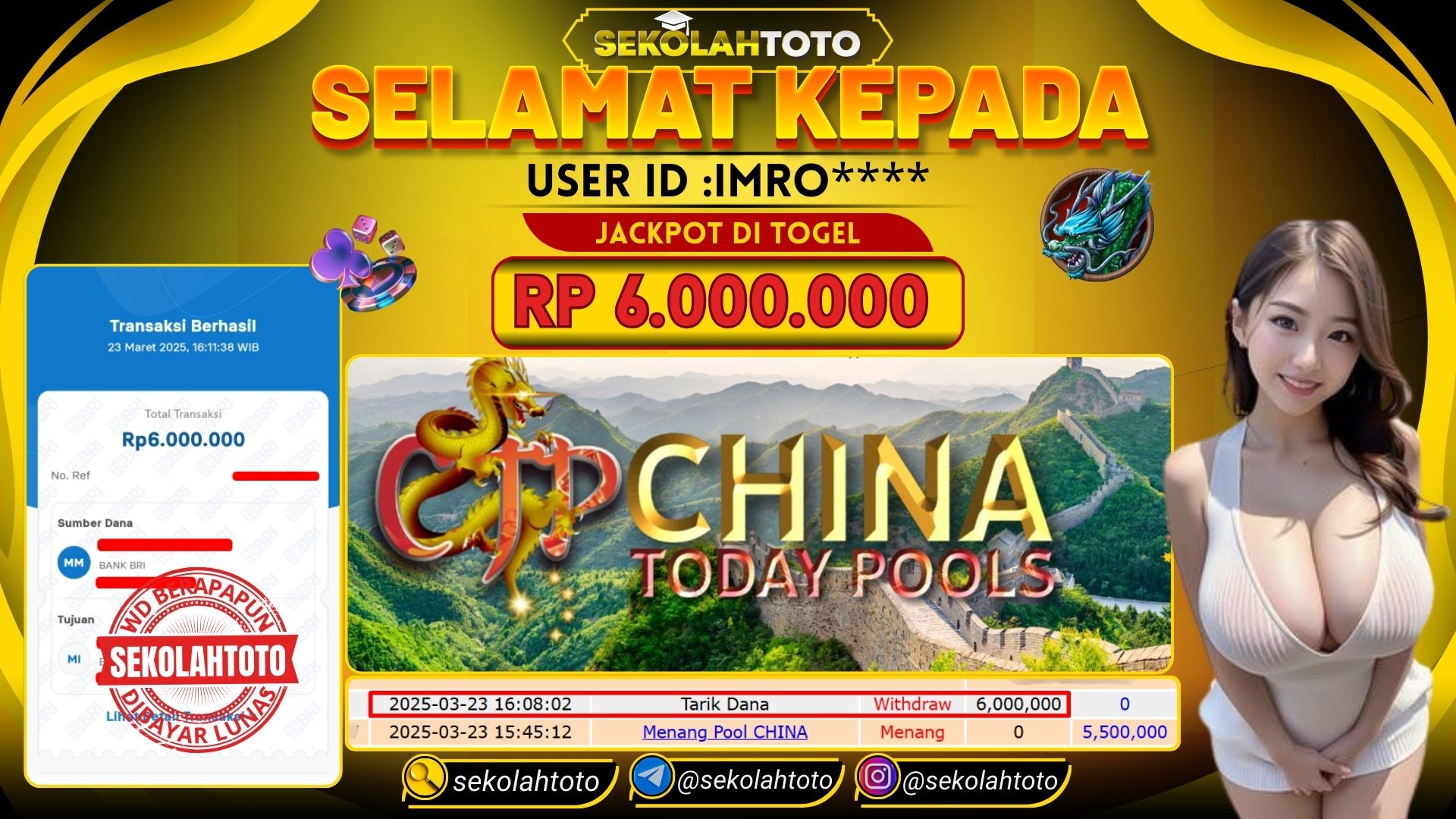 BUKTI PEMBAYAR JACKPOT TOGEL ONLINE 23 Maret 2025 Posted by kepsektoto CHINA POOLS MINGGU , 23 MARET 2025 RP. 6,000,000,- Selamat Kepada Pemenang. Salam JP, Sekolahtoto Updated: 23 Maret 2025 at 16:27 ◀ Prediksi Togel Toto Macau Hari Ini Prediksi Togel Bullseye Pools Hari Ini ▶