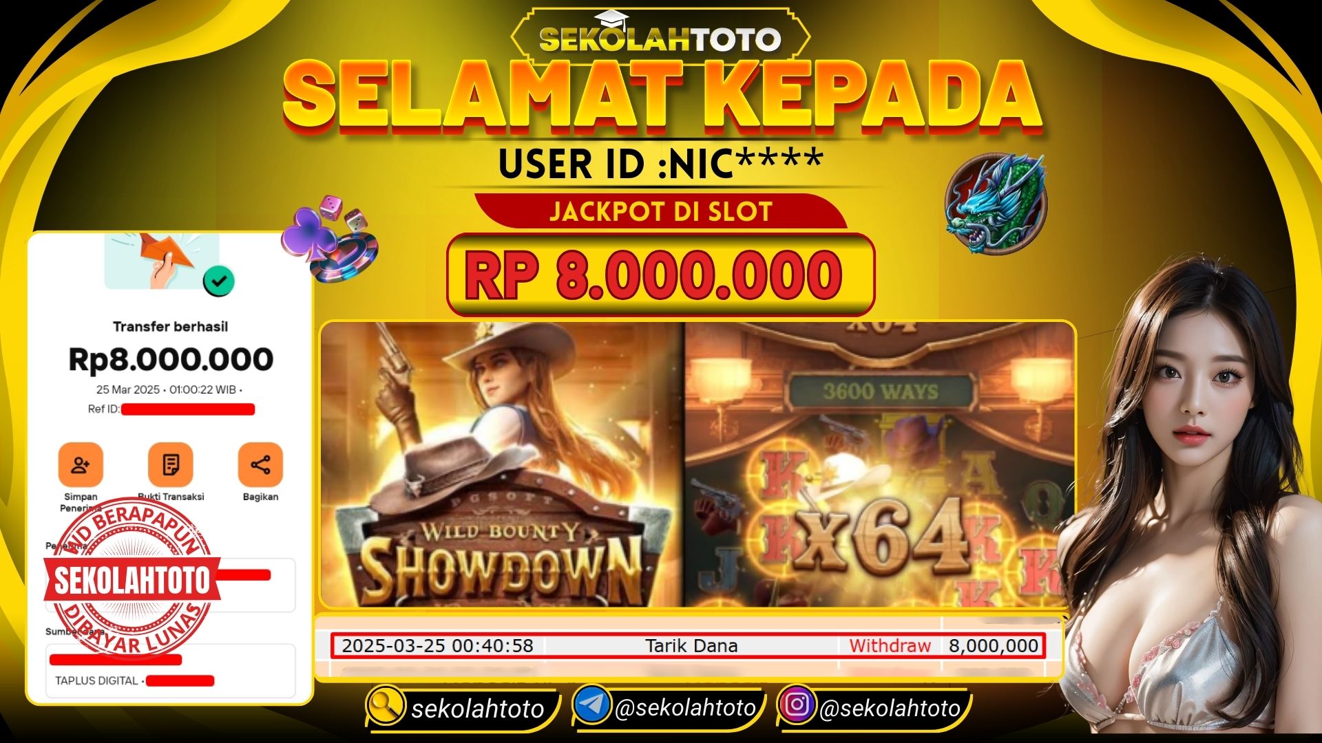 BUKTI PEMBAYAR JACKPOT PG SOFT 25 Maret 2025 Posted by kepsektoto WILD BOUNTY SHAWDOWN SELASA, 25 MARET 2025 RP. 8,000,000,- Selamat Kepada Pemenang. Salam JP, Sekolahtoto Updated: 25 Maret 2025 at 01:11 ◀ Prediksi Togel Toto Macau Hari Ini BUKTI PEMBAYAR JACKPOT PRAGMATIC PLAY ▶