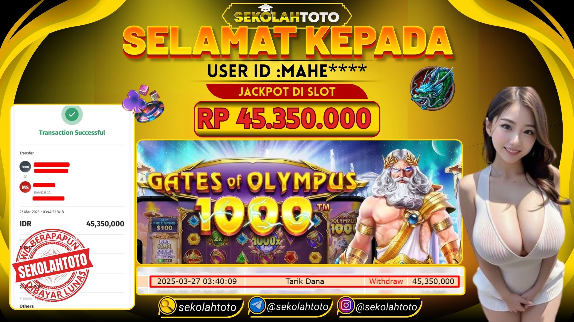 BUKTI PEMBAYAR JACKPOT PRAGMATIC PLAY 27 Maret 2025 Posted by kepsektoto GATES OF OLYMPUS 1000 KAMIS, 27 MARET 2025 RP. 45,350,000,- Selamat Kepada Pemenang. Salam JP, Sekolahtoto Updated: 27 Maret 2025 at 04:33 ◀ BUKTI PEMBAYAR JACKPOT PRAGMATIC PLAY Prediksi Togel Bullseye Pools Hari Ini ▶