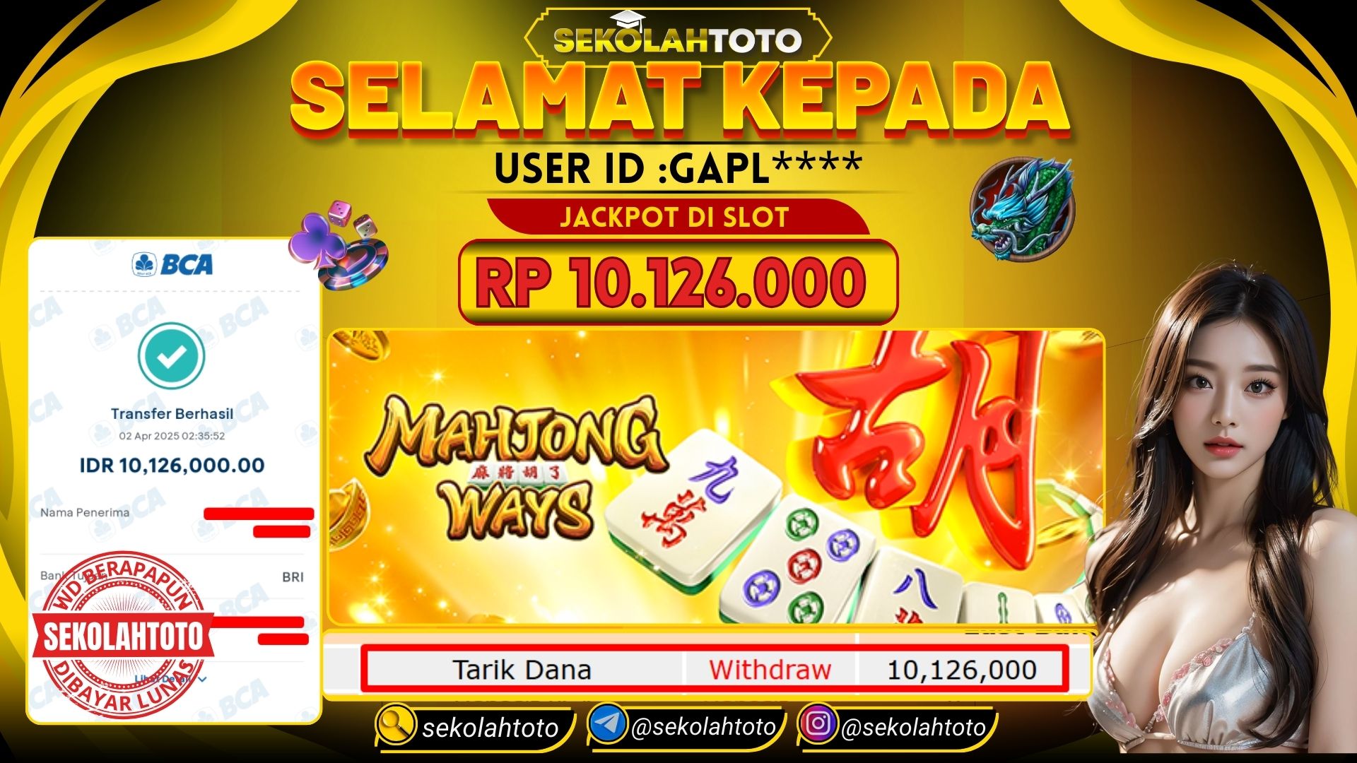 BUKTI PEMBAYAR JACKPOT PG SOFT 2 April 2025 Posted by kepsektoto MAHJONG WAYS RABU, 2 APRIL 2025 RP. 10,126,000,- Selamat Kepada Pemenang. Salam JP, Sekolahtoto Updated: 2 April 2025 at 02:44 ◀ Prediksi Togel Toto Macau Hari Ini BUKTI PEMBAYAR JACKPOT PRAGMATIC PLAY ▶