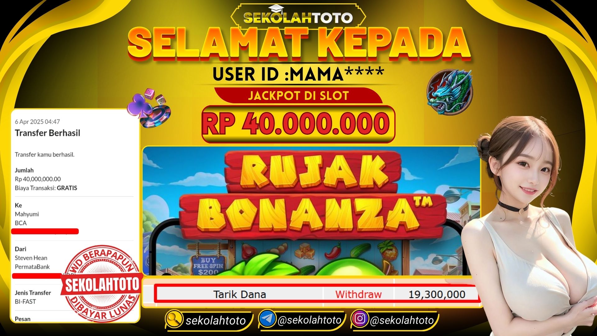 BUKTI PEMBAYAR JACKPOT PRAGMATIC PLAY 6 April 2025 Posted by kepsektoto RUJAK BONANZA MINGGU, 6 APRIL 2025 RP. 40,000,000,- Selamat Kepada Pemenang. Salam JP, Sekolahtoto Updated: 6 April 2025 at 05:36 ◀ BUKTI PEMBAYAR JACKPOT PRAGMATIC PLAY Prediksi Togel Bullseye Pools Hari Ini ▶