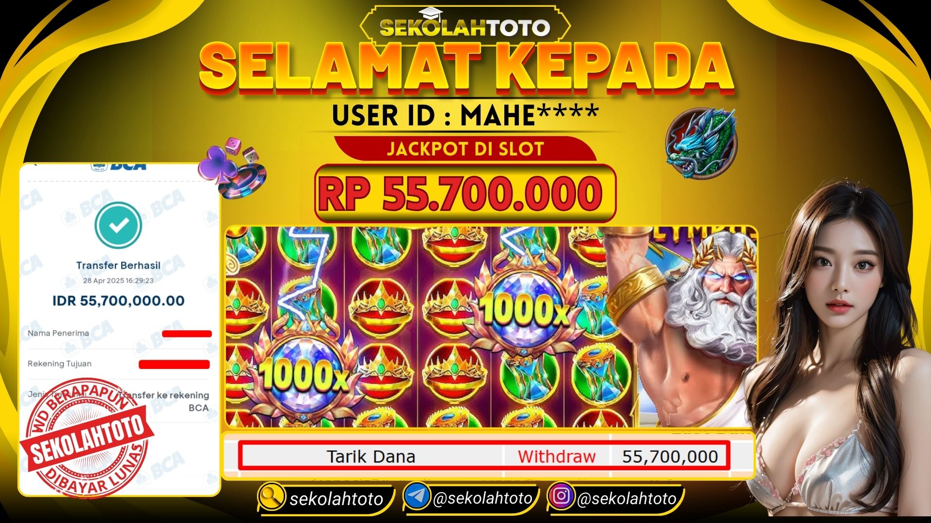 BUKTI PEMBAYAR JACKPOT PRAGMATIC PLAY 28 April 2025 Posted by kepsektoto SLOT MANIA OLYMPUS SENIN, 28 APRIL 2025 RP.55,700,000,- Selamat Kepada Pemenang. Salam JP, Sekolahtoto Updated: 28 April 2025 at 16:39 ◀ BUKTI PEMBAYAR JACKPOT PG SOFT Prediksi Togel Oregon09 Hari Ini ▶