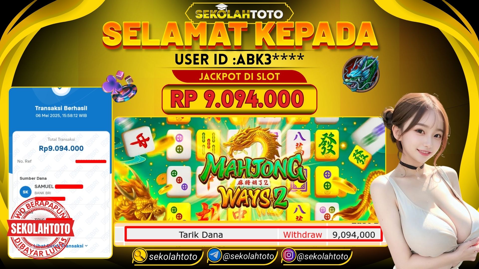 BUKTI PEMBAYAR JACKPOT PG SOFT 6 Mei 2025 Posted by kepsektoto MAHJONG WAYS 2 MINGGU, 6 MEI 2025 RP.9,094,000,- Selamat Kepada Pemenang. Salam JP, Sekolahtoto Updated: 6 Mei 2025 at 17:51 ◀ Prediksi Togel Toto Macau Hari Ini Prediksi Togel Bullseye Pools Hari Ini ▶