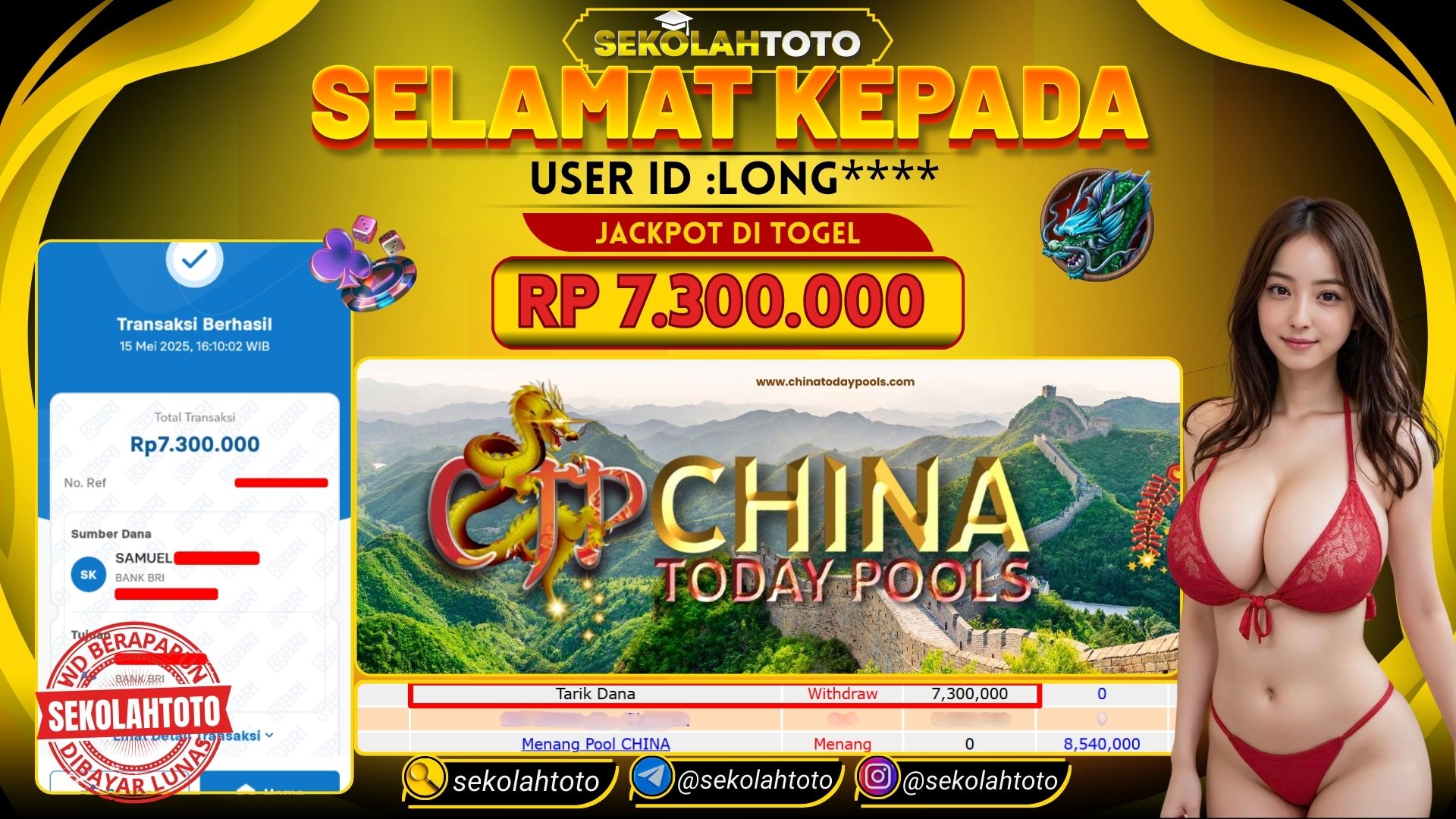 BUKTI PEMBAYAR JACKPOT TOGEL 15 Mei 2025 Posted by kepsektoto CHINA POOLS KAMIS, 15 MEI 2025 RP.7,300,000,- Selamat Kepada Pemenang. Salam JP. Updated: 15 Mei 2025 at 16:23 ◀ BUKTI PEMBAYAR JACKPOT PG SOFT BUKTI PEMBAYAR JACKPOT PRAGMATIC PLAY ▶