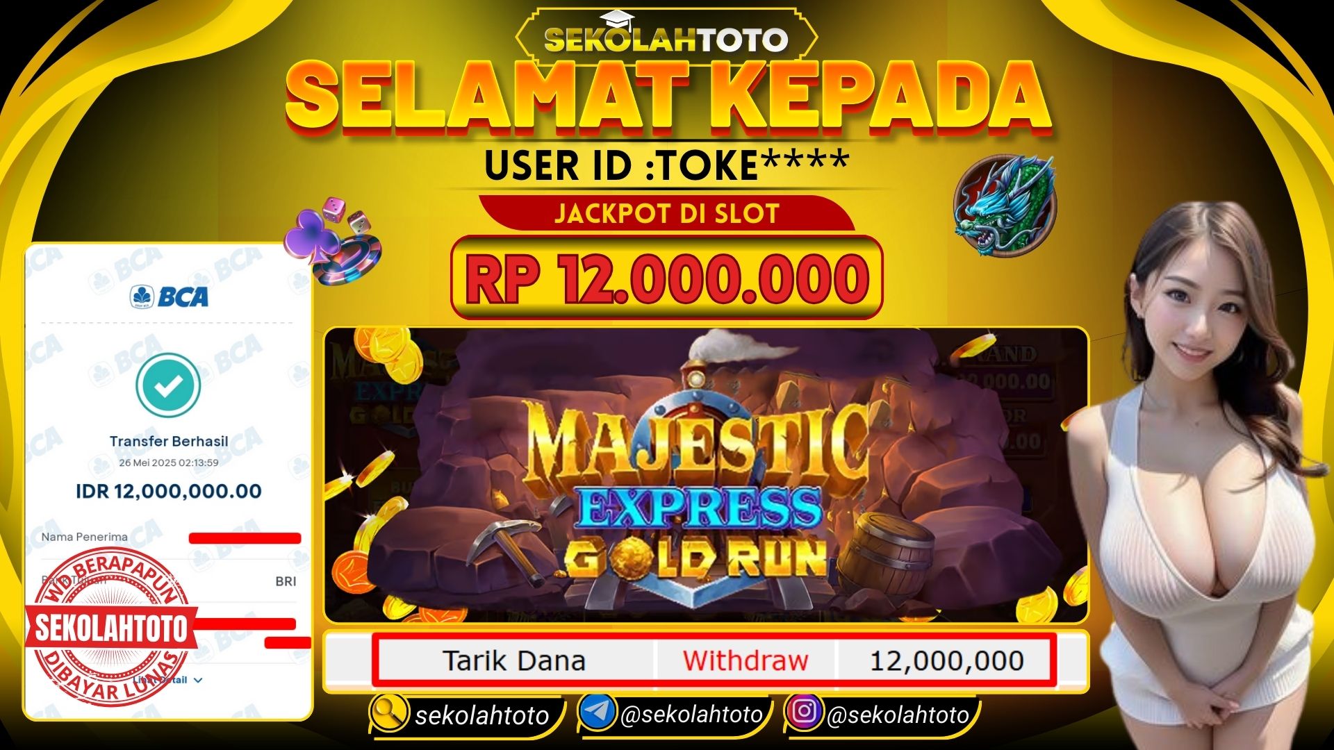 BUKTI PEMBAYARAN JACKPOT PRAGMATIC PLAY 26 Mei 2025 Posted by kepsektoto MAJESTIC EXPRESS GOLD RUN SENIN, 26 MEI 2025 RP 12,000,000,- Selamat Kepada Pemenang. Salam JP Updated: 26 Mei 2025 at 03:05 ◀ BUKTI PEMBAYARAN JACKPOT PG SOFT BUKTI PEMBAYARAN JACKPOT PRAGMATIC PLAY ▶