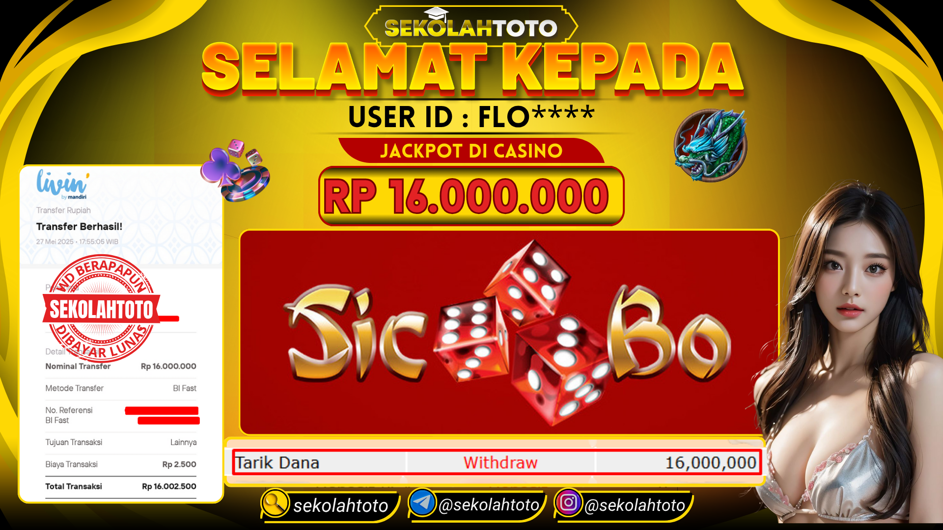 BUKTI PEMBAYARAN JACKPOT LIVE CASINO 27 Mei 2025 Posted by kepsektoto SICBO DICE SELASA , 27 MEI 2025 RP 16,000,000,- Selamat Kepada Pemenang. Salam JP Updated: 27 Mei 2025 at 20:04 ◀ BUKTI PEMBAYARAN JACKPOT PRAGMATIC PLAY Prediksi Togel Bullseye Pools Hari Ini ▶