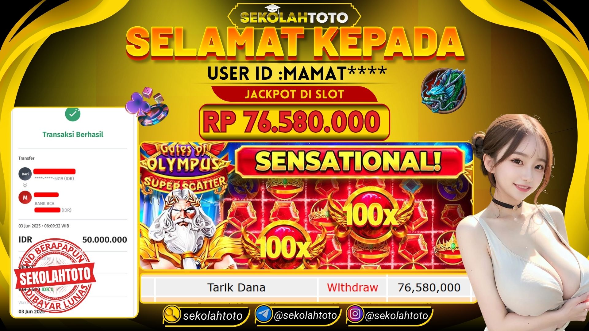 BUKTI PEMBAYARAN JACKPOT PRAGMATIC PLAY 3 Juni 2025 Posted by kepsektoto GATES OF OLYMPUS SUPER SCATTER SELASA, 3 JUNI 2025 RP 76,580,000,- Selamat Kepada Pemenang. Salam JP Updated: 3 Juni 2025 at 08:59 ◀ BUKTI PEMBAYARAN JACKPOT PRAGMATIC PLAY BUKTI PEMBAYARAN JACKPOT PRAGMATIC ▶