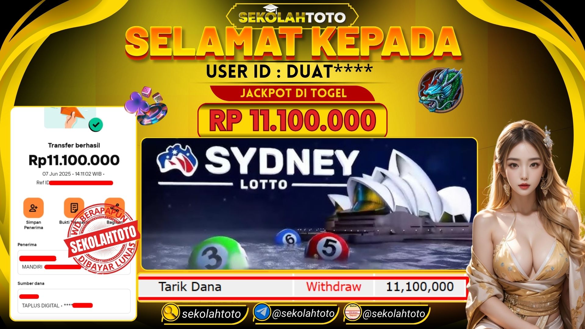 BUKTI PEMBAYARAN JACKPOT TOGEL 7 Juni 2025 Posted by kepsektoto SYDNEY LOTTO SABTU, 7 JUNI 2025 RP .11,100,000,- Selamat Kepada Pemenang. Salam JP Updated: 7 Juni 2025 at 18:09 ◀ BUKTI PEMBAYARAN JACKPOT PG SOFT BUKTI PEMBAYARAN JACKPOT PRAGMATIC PLAY ▶