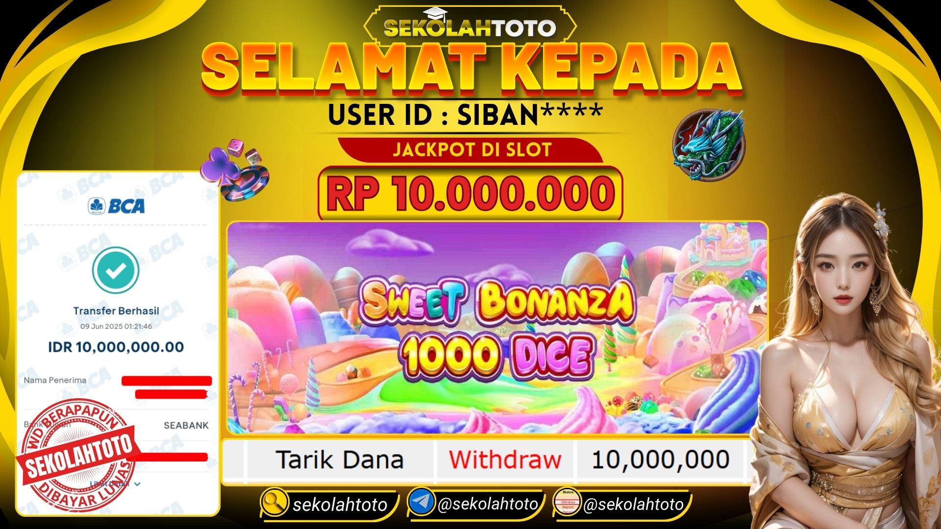 BUKTI PEMBAYARAN JACKPOT PRAGMATIC PLAY 9 Juni 2025 Posted by kepsektoto SWEET BONANZA 1000 DICE SENIN, 9 JUNI 2025 RP 10,000,000,- Selamat Kepada Pemenang. Salam JP Updated: 9 Juni 2025 at 01:31 ◀ Prediksi Togel Toto Macau Hari Ini BUKTI PEMBAYARAN JACKPOT PG SOFT ▶