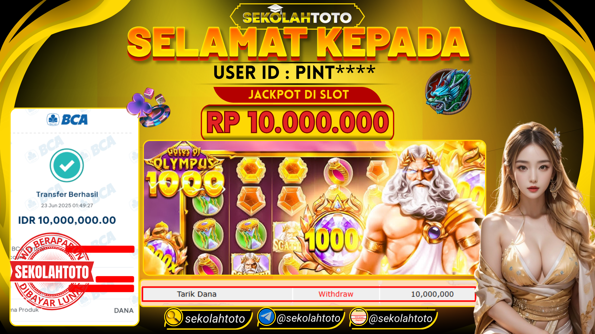 BUKTI PEMBAYARAN JACKPOT PRAGMATIC PLAY 23 Juni 2025 Posted by kepsektoto GATES OF OLYMPUS 1000 SENIN , 23 JUNI 2025 RP 10,000,000,- Selamat Kepada Pemenang. Salam JP Updated: 23 Juni 2025 at 08:52 ◀ Prediksi Togel Toto Macau Hari Ini BUKTI PEMBAYARAN JACKPOT PRAGMATIC PLAY ▶