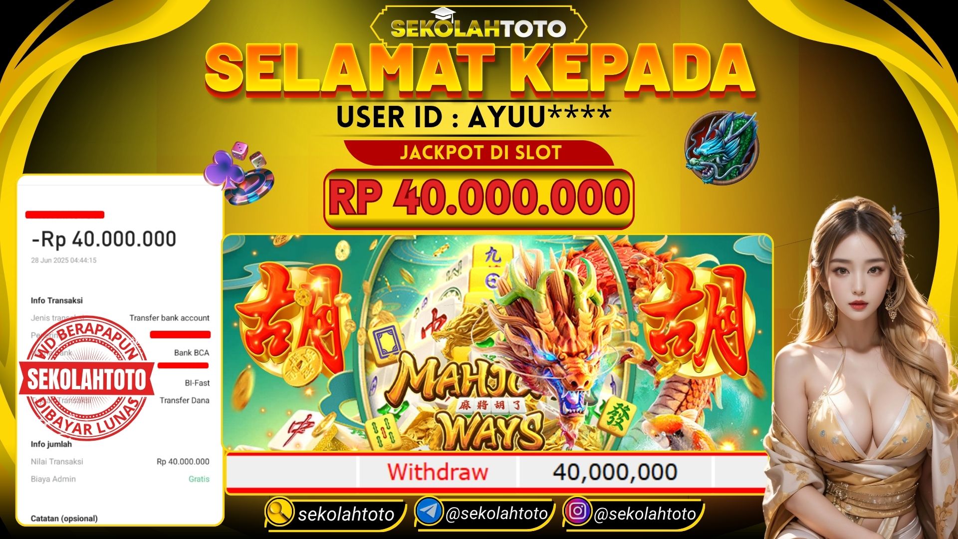 BUKTI PEMBAYARAN JACKPOT PG SOFT 28 Juni 2025 Posted by kepsektoto MAHJONG WAYS SABTU, 28 JUNI 2025 RP 40,000,000,- Selamat Kepada Pemenang. Salam JP Updated: 28 Juni 2025 at 05:32 ◀ BUKTI PEMBAYARAN JACKPOT PRAGMATIC PLAY BUKTI PEMBAYARAN JACKPOT TOGEL SINGAPORE P ▶