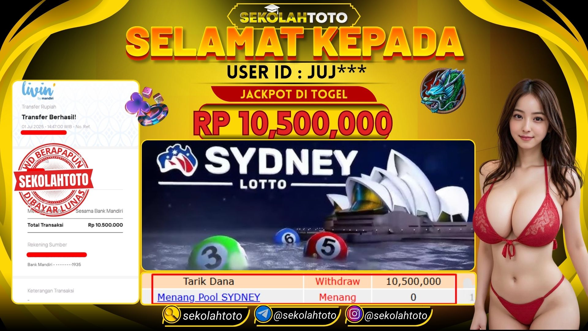 BUKTI PEMBAYARAN JACKPOT TOGEL 1 Juli 2025 Posted by kepsektoto SYDNEY LOTTO SELASA, 1 JULI 2025 RP 10,500,000,- Selamat Kepada Pemenang. Salam JP Updated: 1 Juli 2025 at 15:52 ◀ BUKTI PEMBAYARAN JACKPOT PG SOFT BUKTI PEMBAYARAN JACKPOT TOGEL ▶