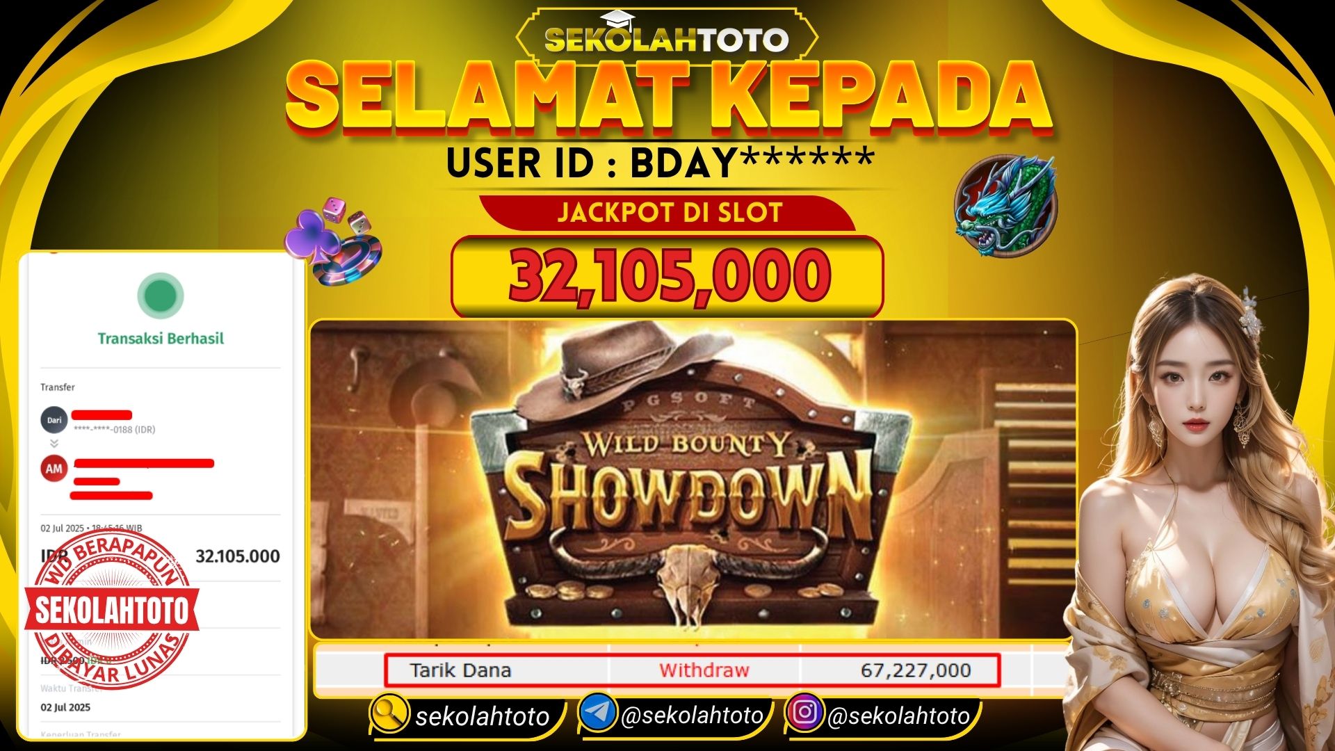 BUKTI PEMBAYARAN JACKPOT PG SOFT 2 Juli 2025 Posted by kepsektoto WILD BOUNTY SHOWDOWN RABU , 2 JULIĀ 2025 RP 32,105,000,- Selamat Kepada Pemenang. Salam JP Updated: 2 Juli 2025 at 19:46 ◀ BUKTI PEMBAYARAN JACKPOT PG SOFT Prediksi Togel Bullseye Pools Hari Ini ▶