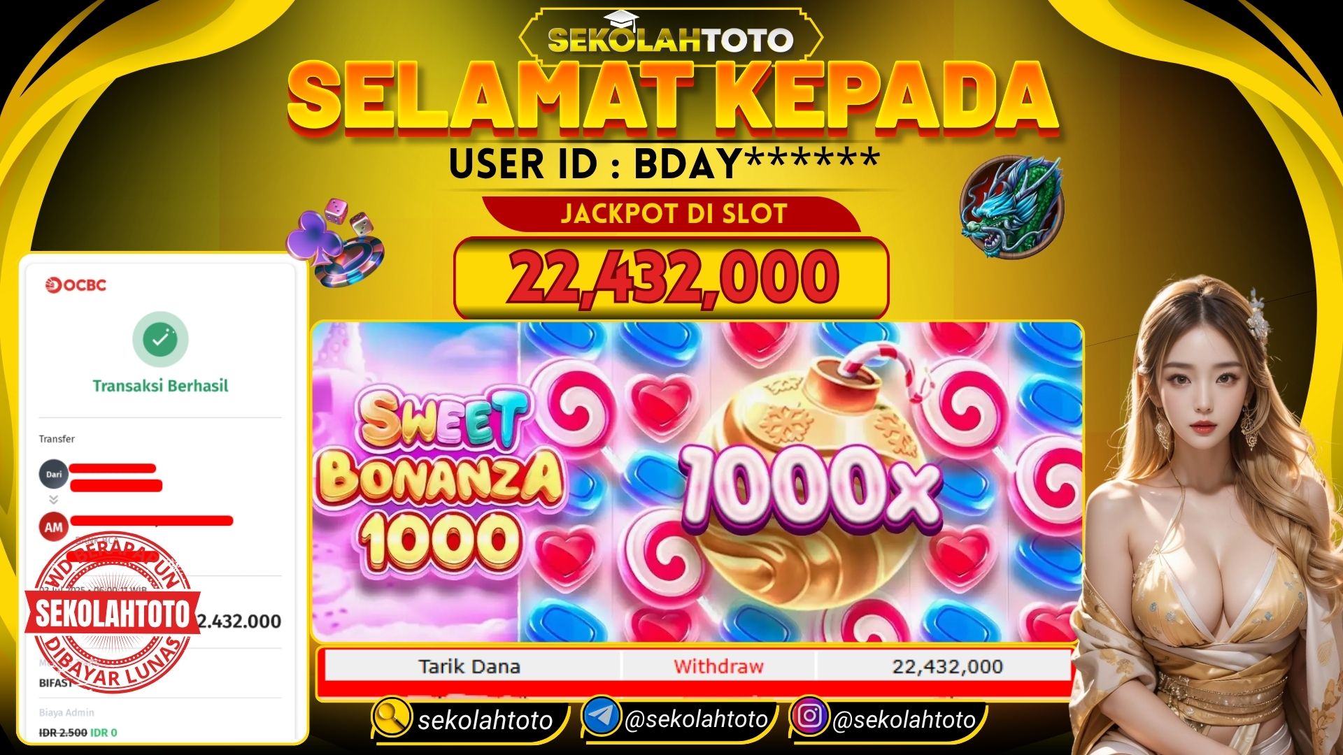 BUKTI PEMBAYARAN JACKPOT PRAGMATIC PLAY 3 Juli 2025 Posted by kepsektoto SWEET BONANZA 1000 KAMIS, 3 JULI 2025 RP 22,432,000,- Selamat Kepada Pemenang. Salam JP Updated: 3 Juli 2025 at 11:27 ◀ BUKTI PEMBAYARAN JACKPOT PG SOFT BUKTI PEMBAYARAN JACKPOT PG SOFT ▶