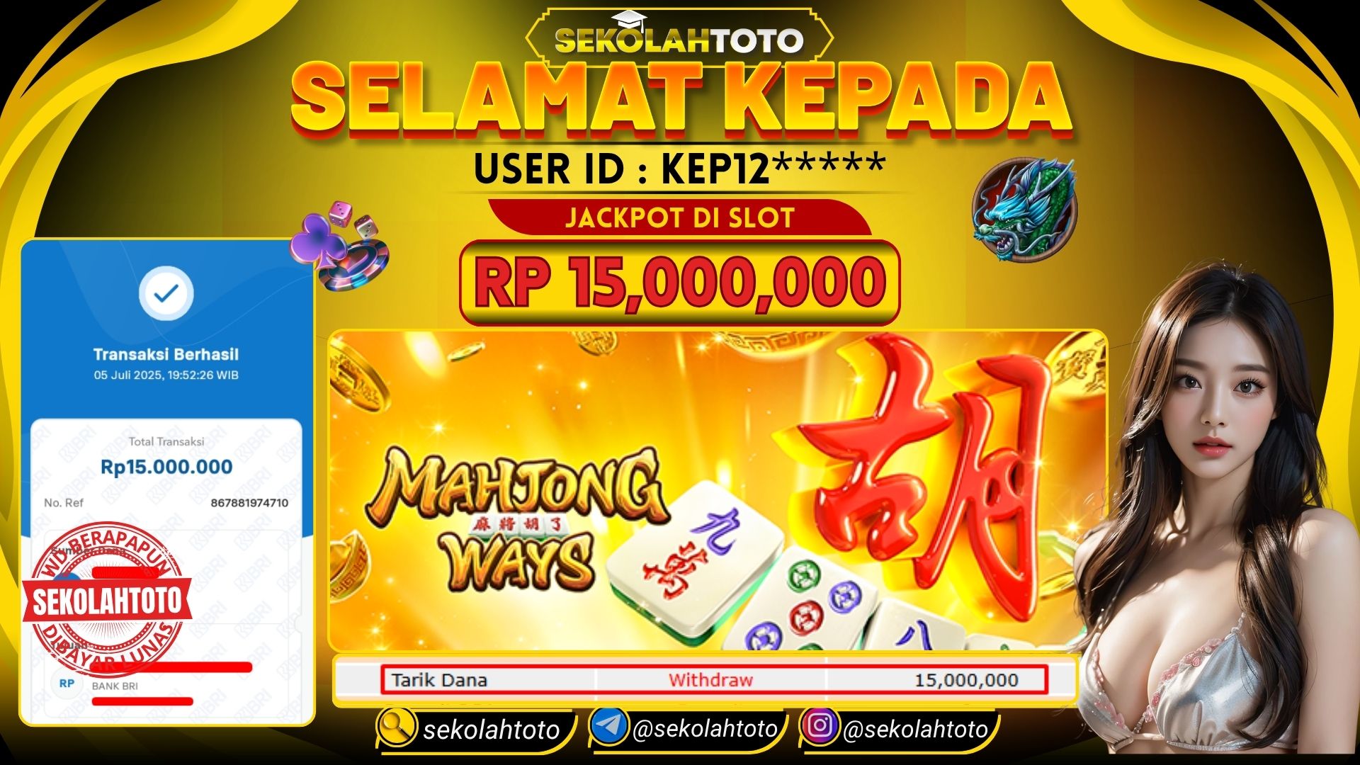 BUKTI PEMBAYARAN JACKPOT PG SOFT 5 Juli 2025 Posted by kepsektoto MAHJONG WAYS SABTU, 5 JULI 2025 RP 15,000,000,- Selamat Kepada Pemenang. Salam JP Updated: 5 Juli 2025 at 20:01 ◀ BUKTI PEMBAYARAN JACKPOT PRAGMATIC PLAY Prediksi Togel Bullseye Pools Hari Ini ▶