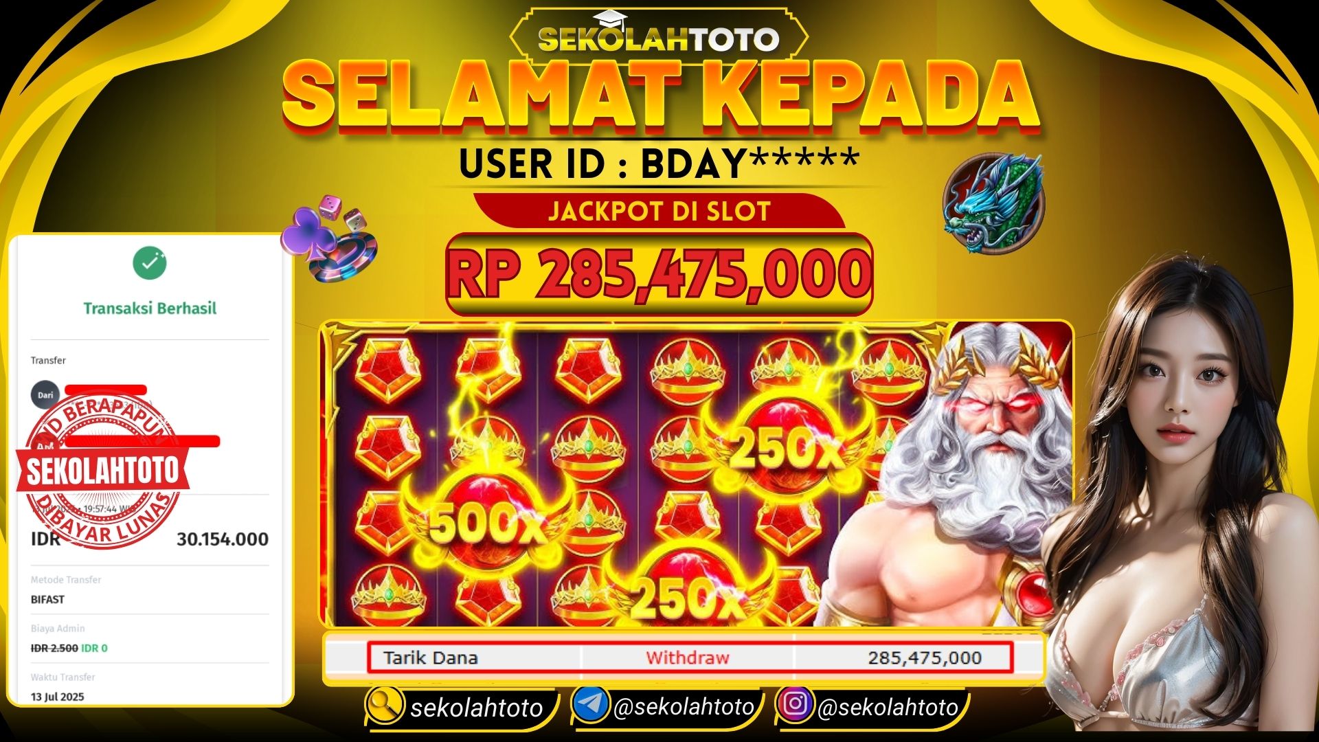 BUKTI PEMBAYARAN JACKPOT PRAGMATIC PLAY 13 Juli 2025 Posted by kepsektoto GATES OF OLYMPUS 1000 MINGGU, 13 JULIĀ 2025 RP 285,475,000,- Selamat Kepada Pemenang. Salam JP Updated: 13 Juli 2025 at 20:48 ◀ BUKTI PEMBAYARAN JACKPOT PRAGMATIC PLAY Prediksi Togel Bullseye Pools Hari Ini ▶