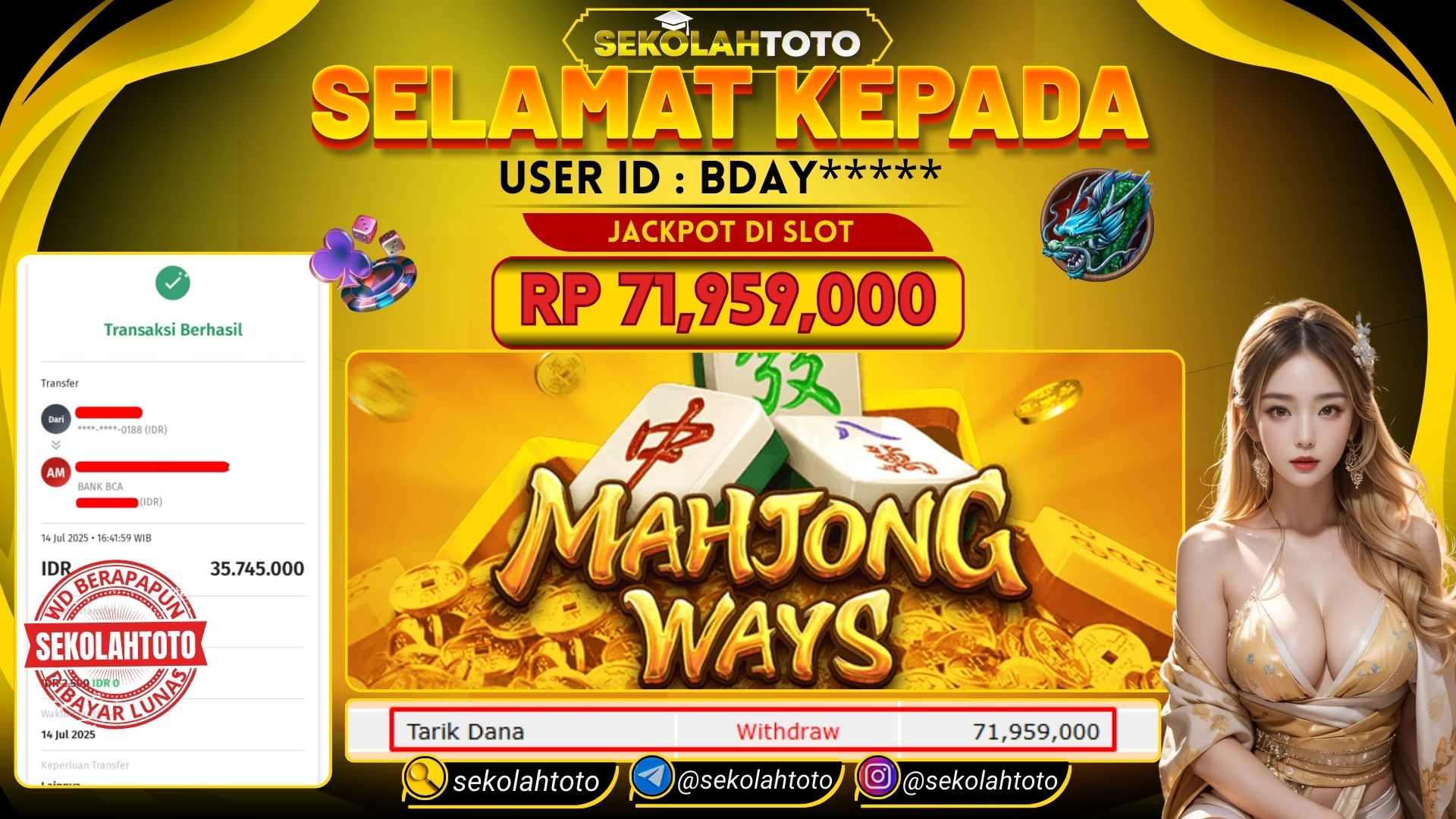 BUKTI PEMBAYARAN JACKPOT PG SOFT 14 Juli 2025 Posted by kepsektoto MAHJONG WAYS SENIN, 14 JULI 2025 RP 71,959,000,- Selamat Kepada Pemenang. Salam JP Updated: 14 Juli 2025 at 16:51 ◀ BUKTI PEMBAYARAN JACKPOT PRAGMATIC PLAY BUKTI PEMBAYARAN JACKPOT PRAGMATIC PLAY ▶