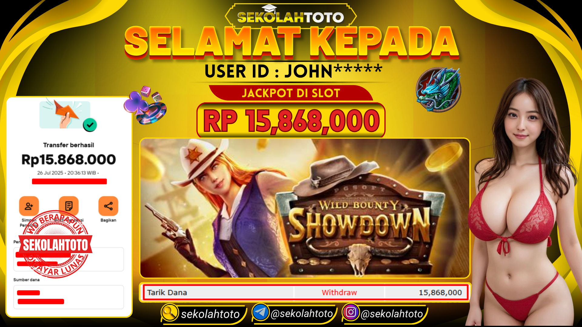 BUKTI PEMBAYARAN JACKPOT PG SOFT 26 Juli 2025 Posted by kepsektoto WILD BOUNTY SHOWDOWN SABTU , 26 JULI 2025 RP 15,868,000,- Selamat Kepada Pemenang. Salam JP Updated: 26 Juli 2025 at 21:10 ◀ BUKTI PEMBAYARAN JACKPOT PRAGMATIC PLAY Prediksi Togel Bullseye Pools Hari Ini ▶