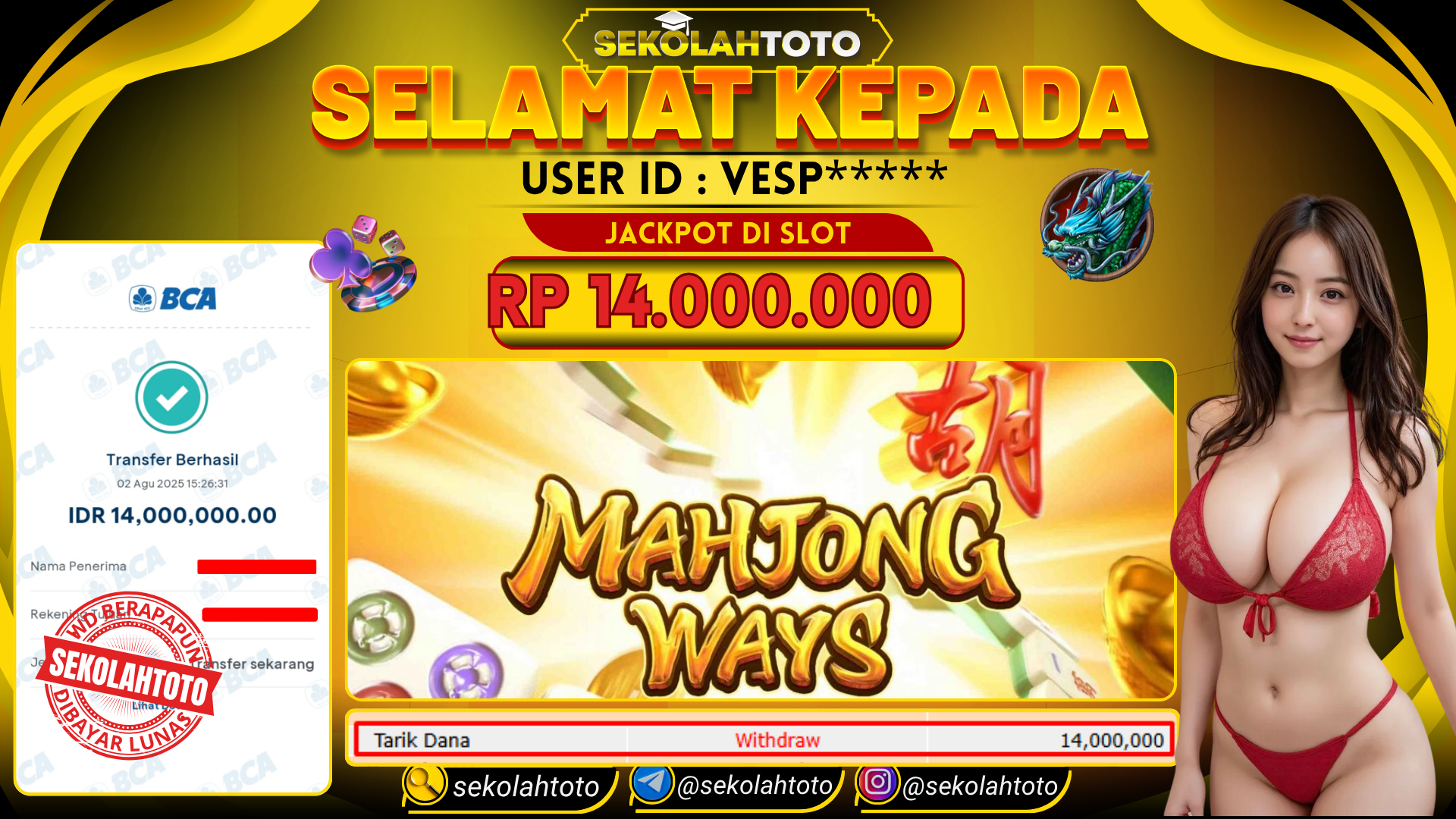 BUKTI PEMBAYARAN JACKPOT PG SOFT 2 Agustus 2025 Posted by kepsektoto MAHJONG WAYS SABTU , 02 AGUSTUS 2025 RP 14,000,000,- Selamat Kepada Pemenang. Salam JP Updated: 2 Agustus 2025 at 18:49 ◀ BUKTI PEMBAYARAN JACKPOT PRAGMATIC PLAY BUKTI PEMBAYARAN JACKPOT PG SOFT ▶