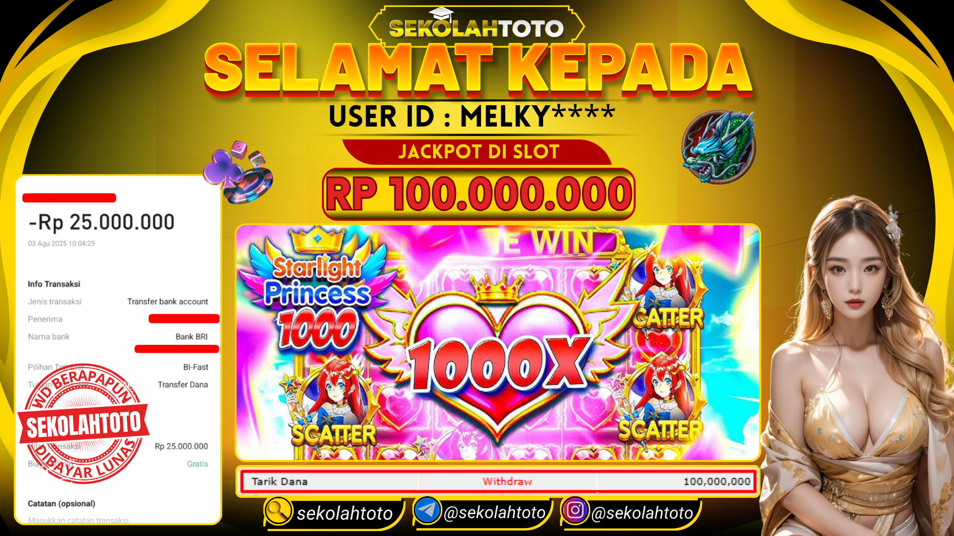 BUKTI PEMBAYARAN JACKPOT PRAGMATIC PLAY 3 Agustus 2025 Posted by kepsektoto STARLIGHT PRINCES 1000 MINGGU, 03 AGUSTUS 2025 RP 100,000,000,- Selamat Kepada Pemenang. Salam JP Updated: 3 Agustus 2025 at 19:40 ◀ BUKTI PEMBAYARAN JACKPOT PRAGMATIC PLAY BUKTI PEMBAYARAN JACKPOT PRAGMATIC PLAY ▶