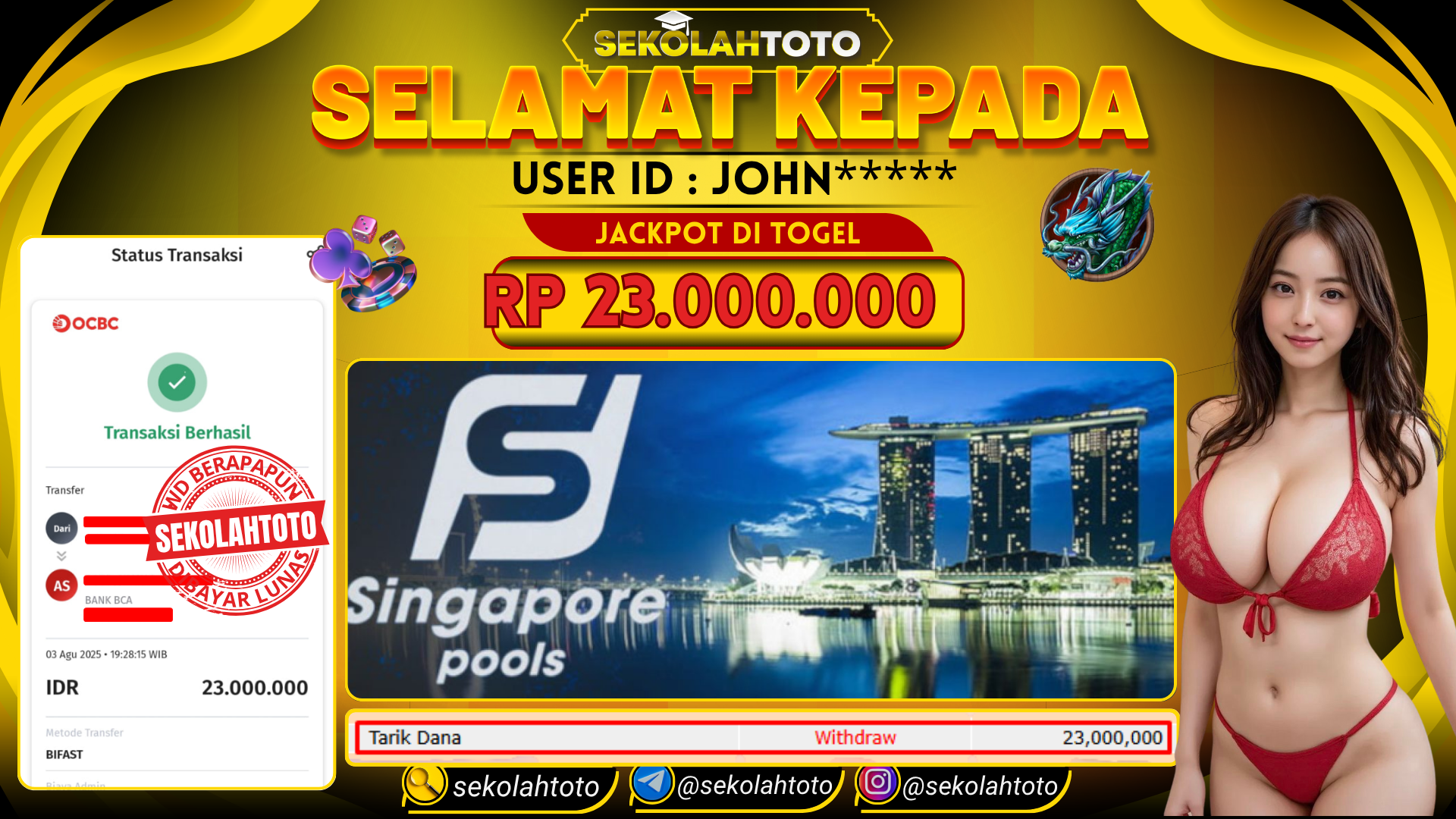 BUKTI PEMBAYARAN JACKPOT TOGEL 3 Agustus 2025 Posted by kepsektoto SINGAPORE POOLS MINGGU, 03 AGUSTUS 2025 RP 23,000,000,- Selamat Kepada Pemenang. Salam JP Updated: 3 Agustus 2025 at 20:53 ◀ BUKTI PEMBAYARAN JACKPOT PRAGMATIC PLAY Prediksi Togel Bullseye Pools Hari Ini ▶