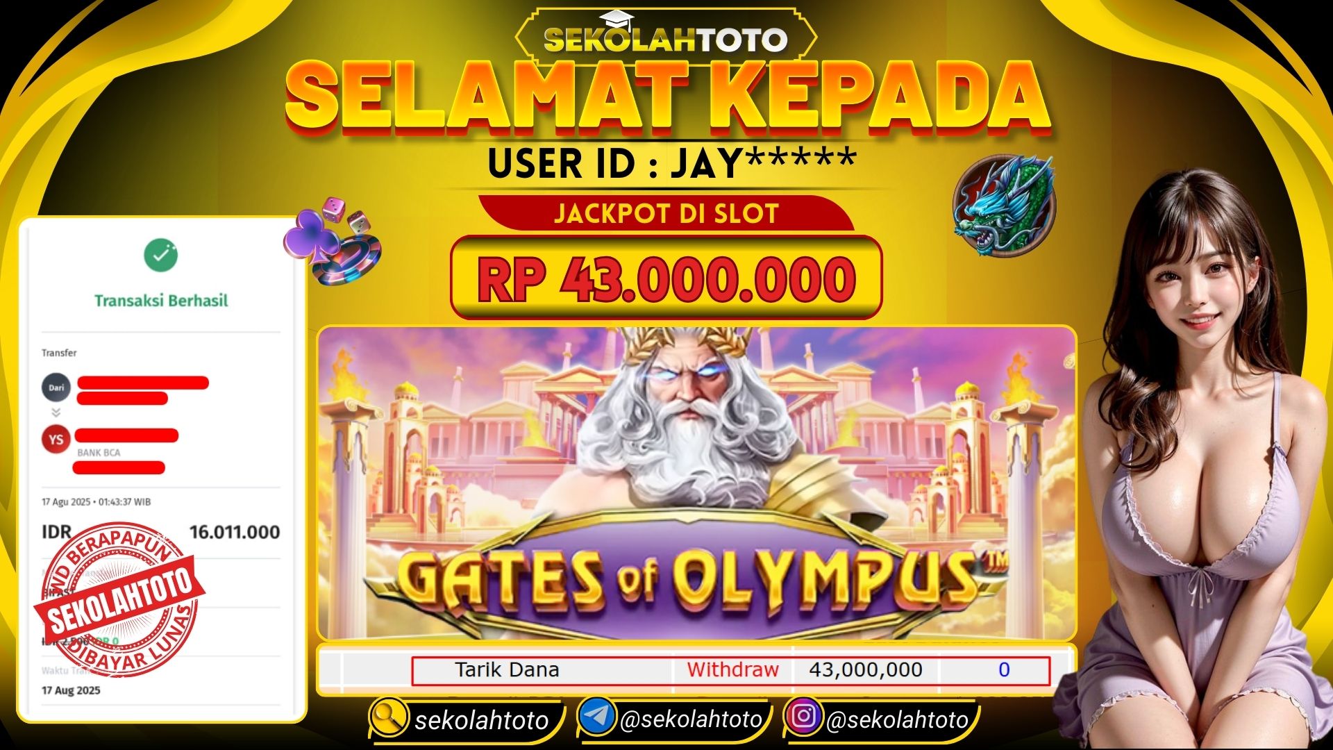 BUKTI PEMBAYARAN JACKPOT PRAGMATIC PLAY 17 Agustus 2025 Posted by kepsektoto GATES OF OLYMPUS x1000 MINGGU, 17 AGUSTUS 2025 RP 43,000,000,- Selamat Kepada Pemenang. Salam JP Updated: 17 Agustus 2025 at 04:16 ◀ Prediksi Togel Toto Macau Hari Ini BUKTI PEMBAYARAN JACKPOT PRAGMATIC PLAY ▶