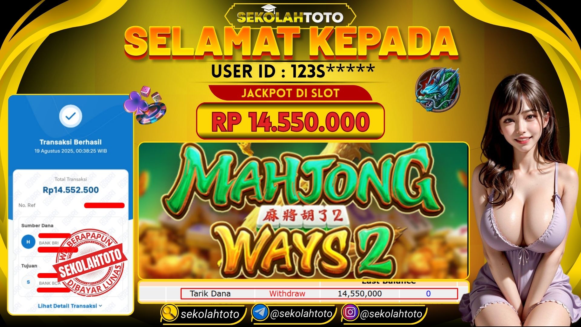 BUKTI PEMBAYARAN JACKPOT PG SOFT 19 Agustus 2025 Posted by kepsektoto MAHJONG WAYS 2 SELASA, 19 AGUSTUS 2025 RP 14,550,000,- Selamat Kepada Pemenang. Salam JP Updated: 19 Agustus 2025 at 02:31 ◀ Prediksi Togel Toto Macau Hari Ini BUKTI PEMBAYARAN JACKPOT PRAGMATIC PLAY ▶