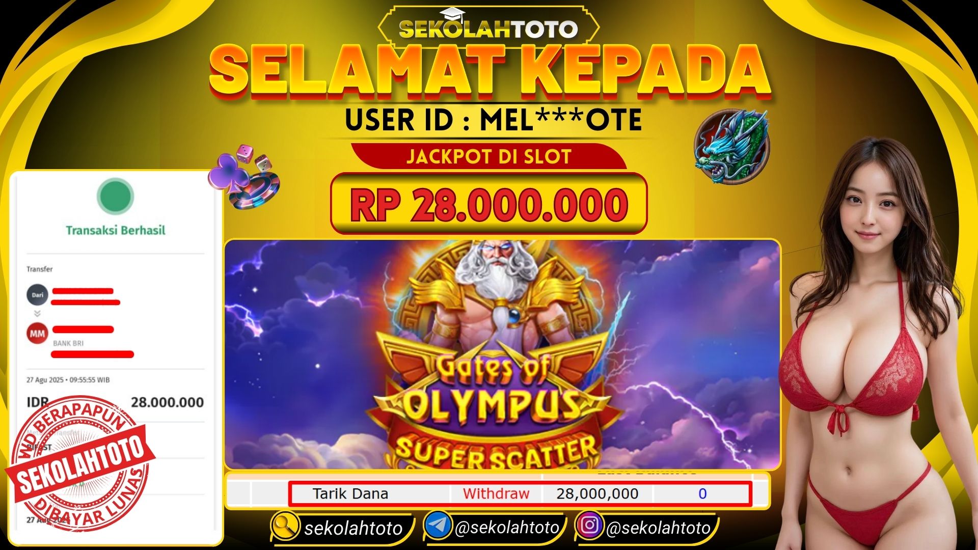 BUKTI PEMBAYARAN JACKPOT PRAGMATIC PLAY 27 Agustus 2025 Posted by kepsektoto GATES OF OLYMPUS SUPER SCATTER RABU , 27 AGUSTUS 2025 RP 28,000,000,- Selamat Kepada Pemenang. Salam JP Updated: 27 Agustus 2025 at 10:14 ◀ BUKTI PEMBAYARAN JACKPOT PGSOFT BUKTI PEMBAYARAN JACKPOT PRAGMATIC PLAY ▶